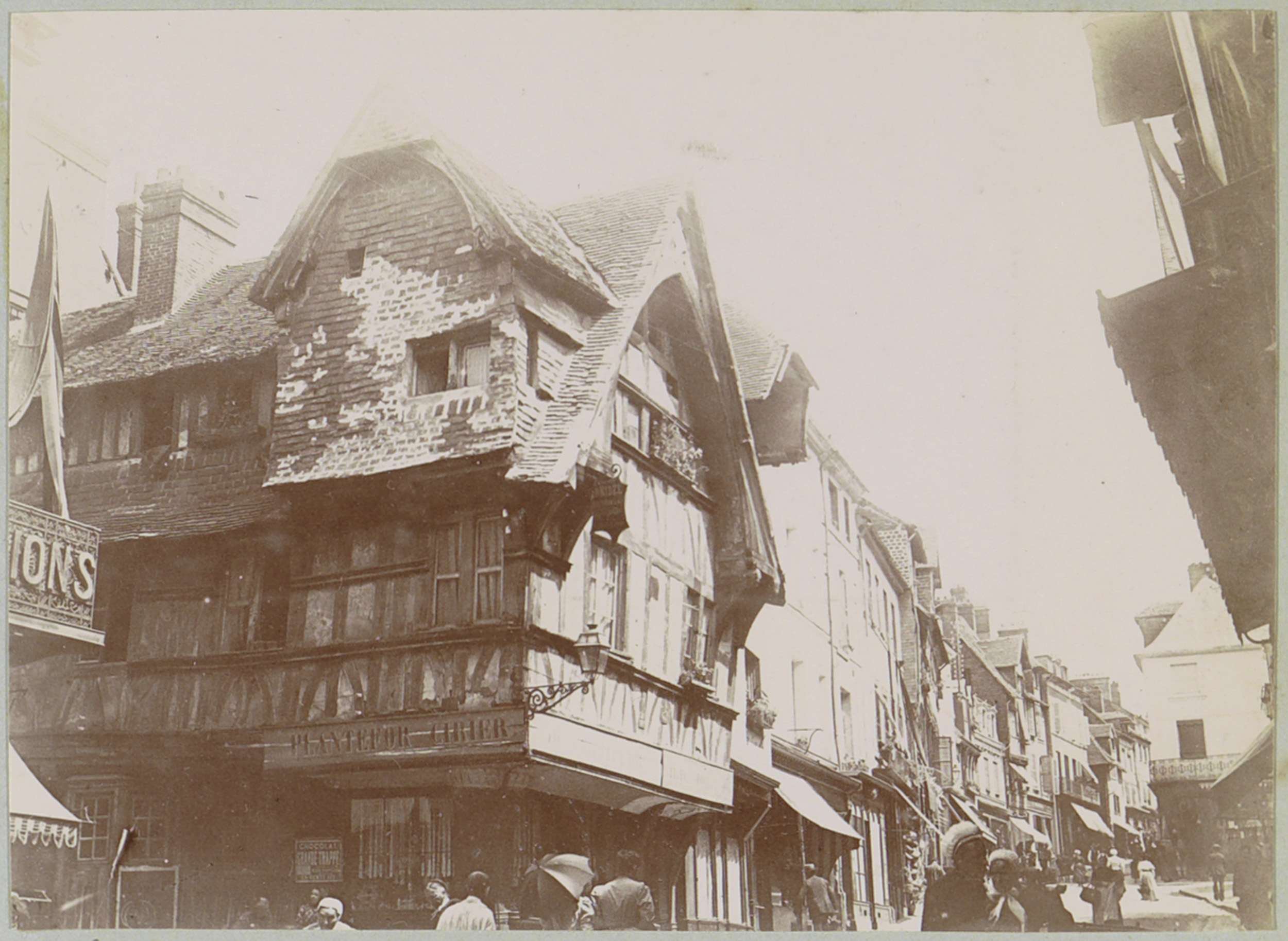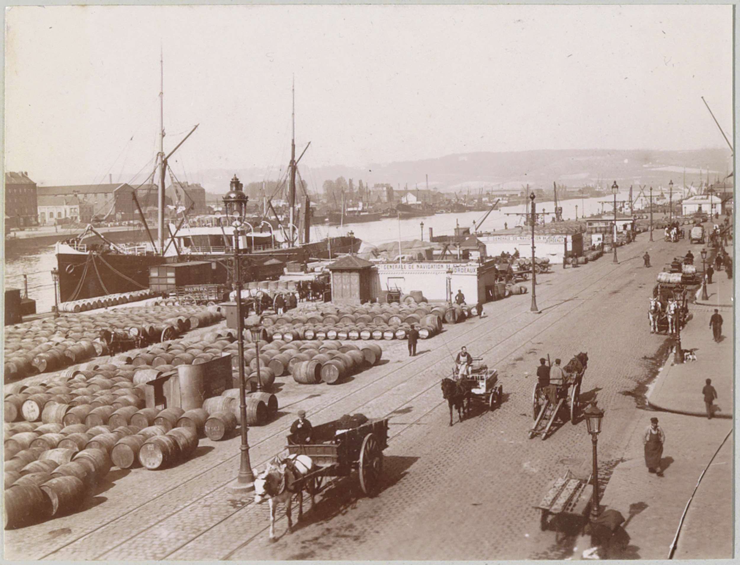 Kade aan de Seine in Rouen met schepen, tonnen en pa...