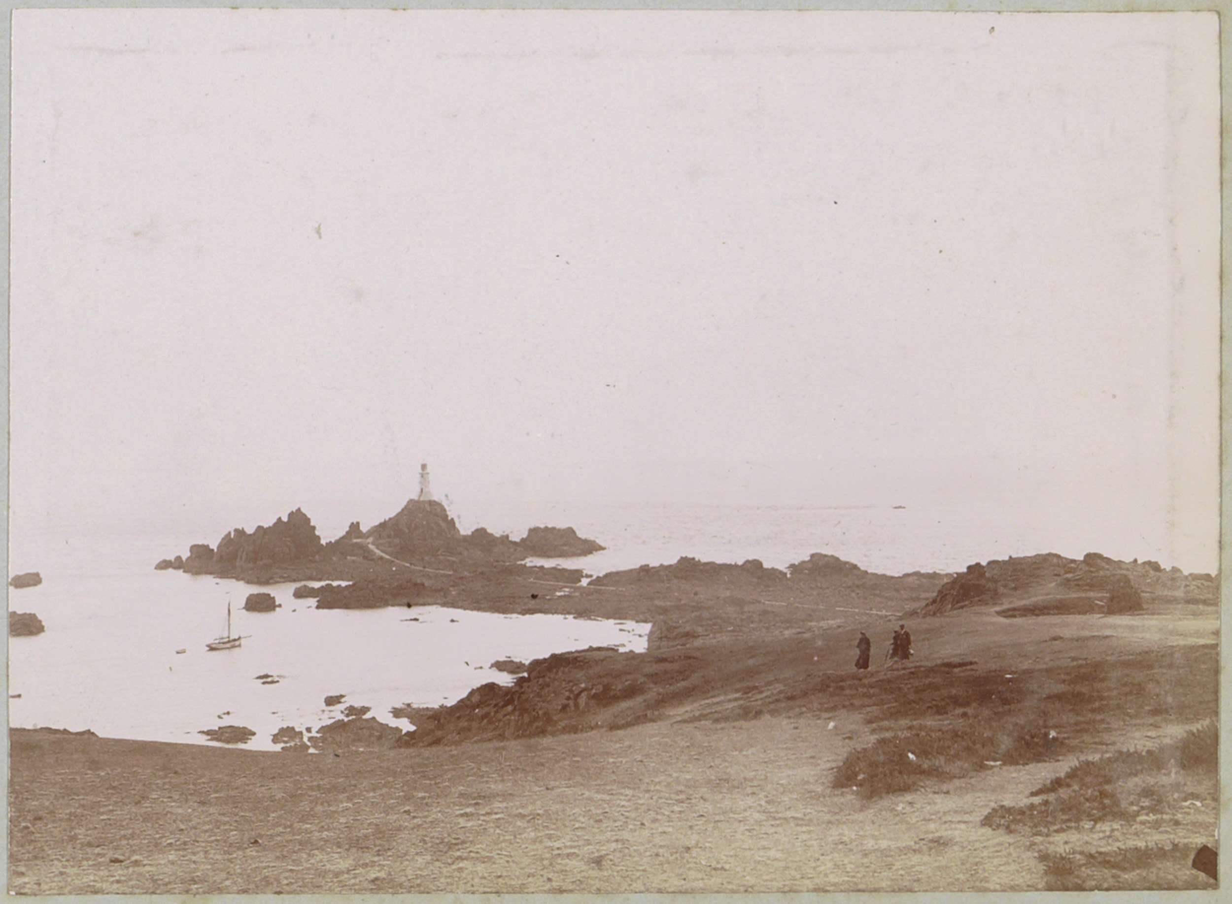 Gezicht op de zee en de kust bij Greve de Lecq op Je...