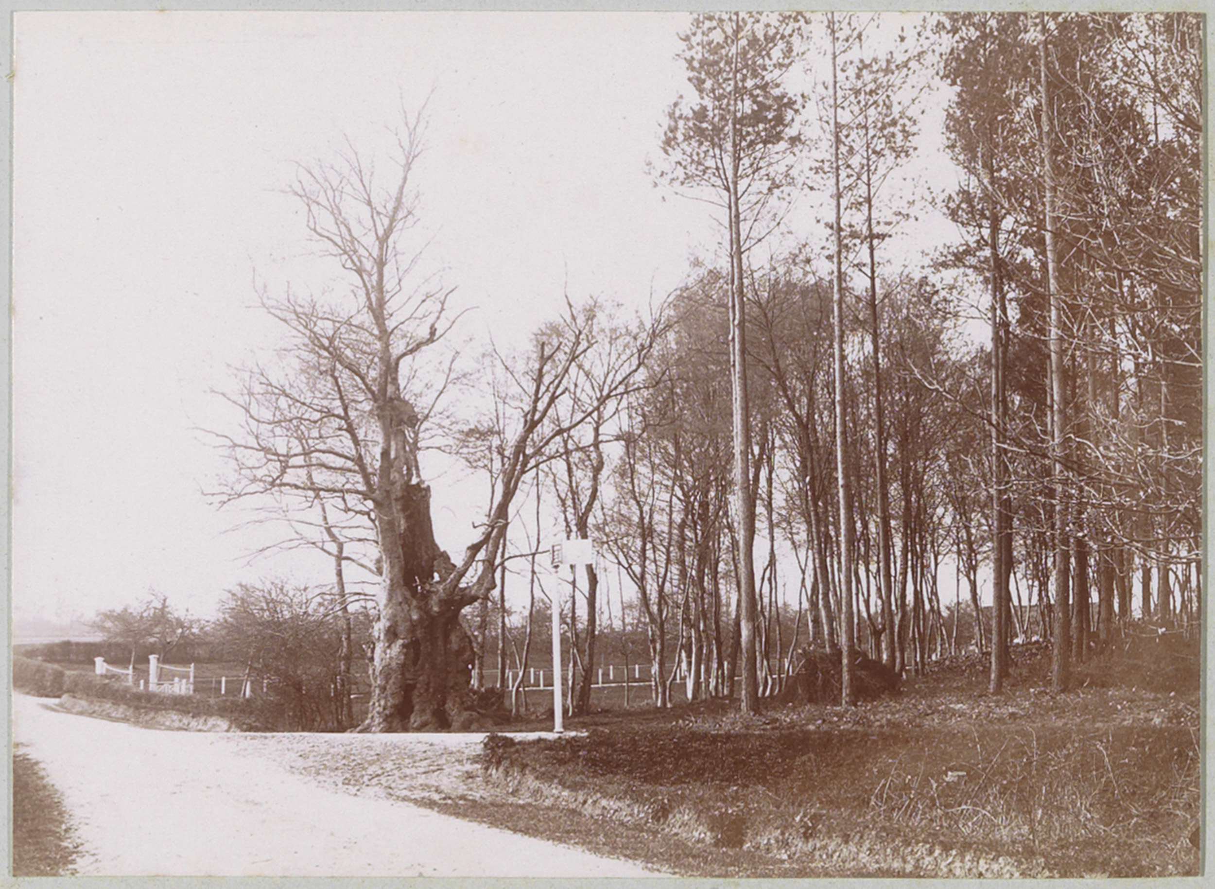 Bomen met kastjes aan de stammen, vermoedelijk bij A...