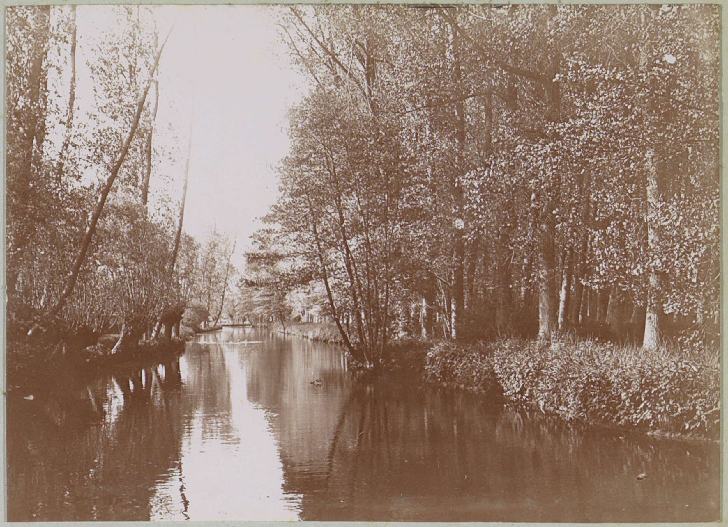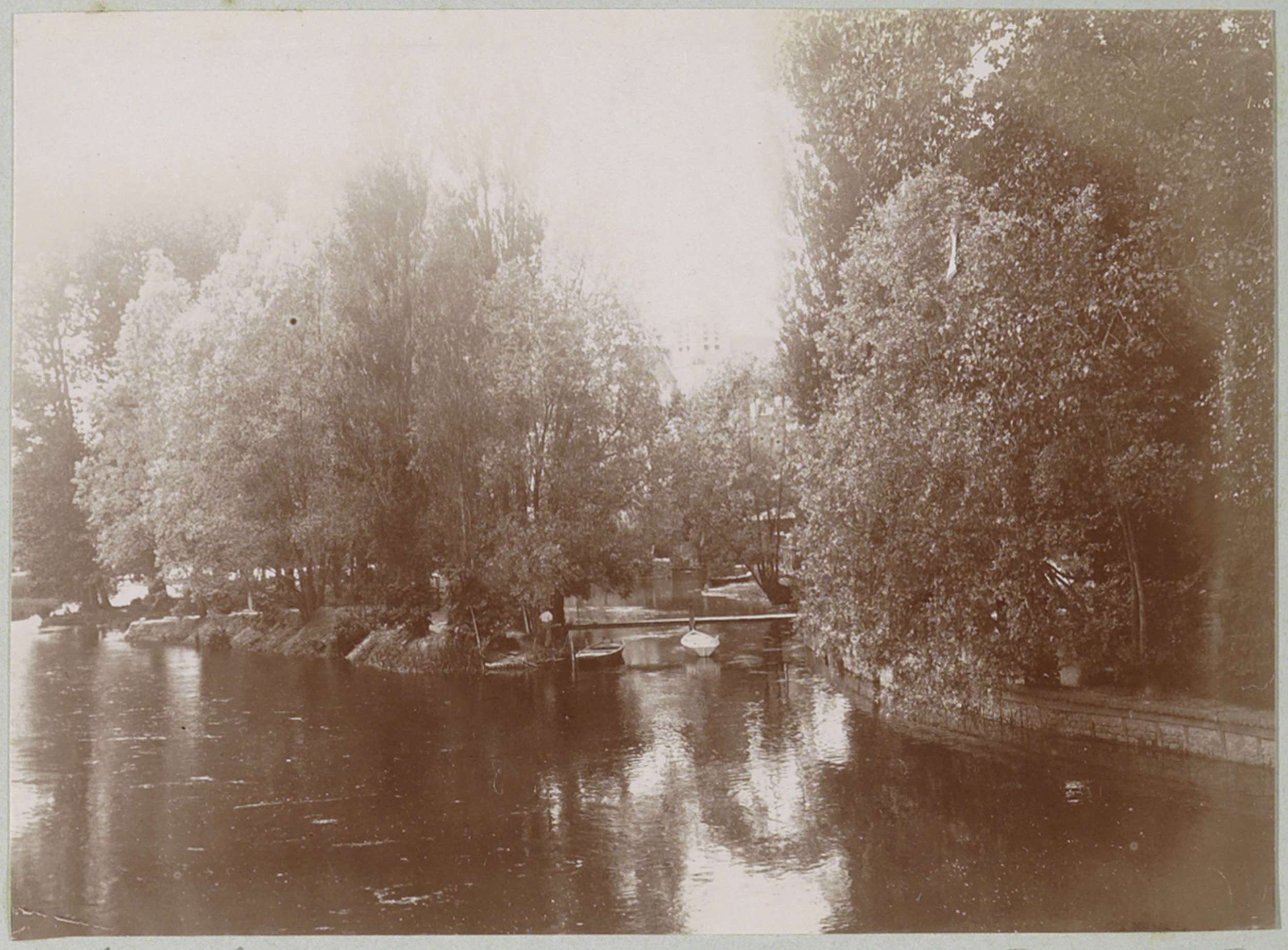 Gezicht op de rivier en oevers in Moret-sur-Loing