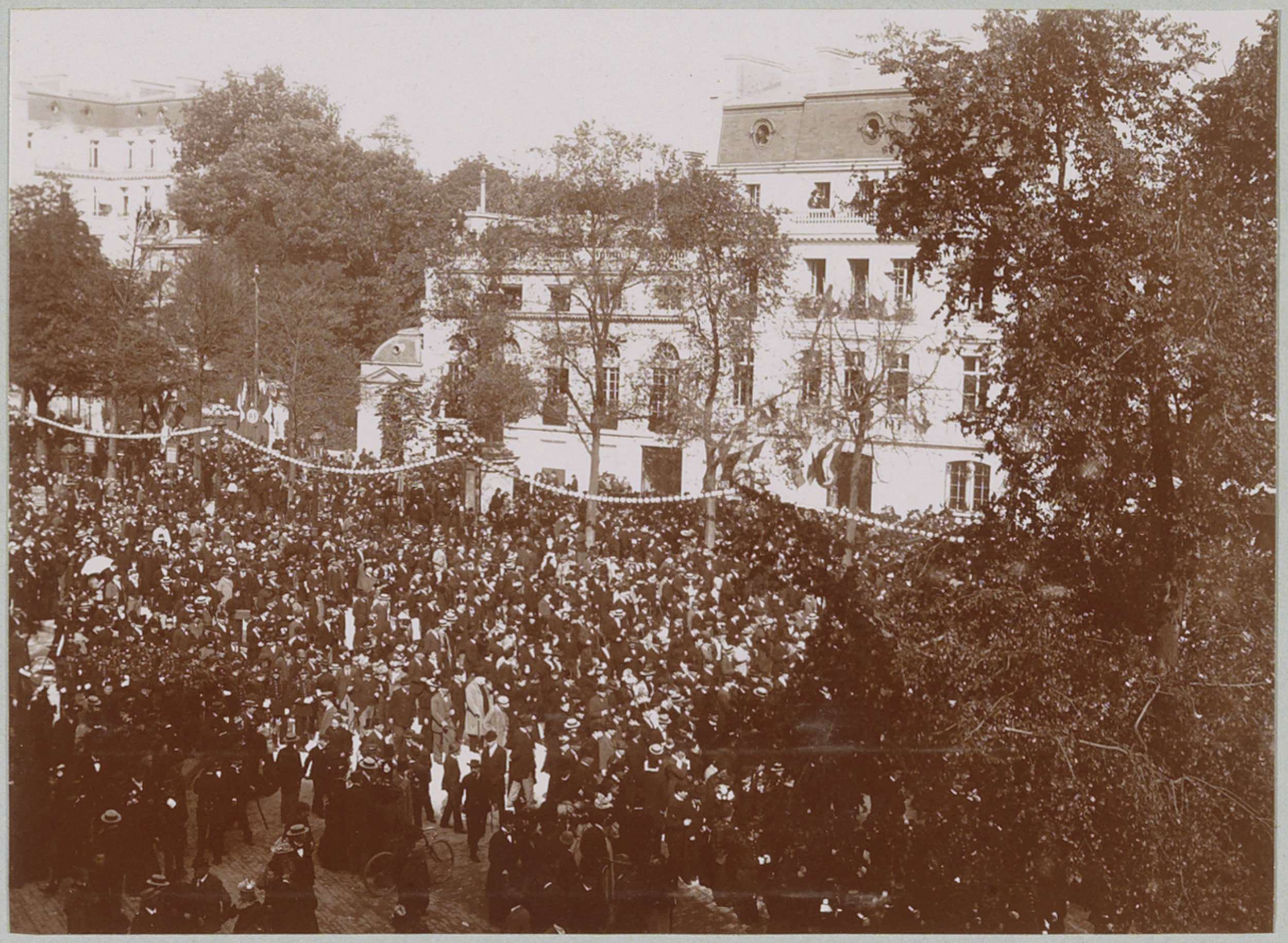 Menigte op straat bij het bezoek van tsaar Nicolaas ...