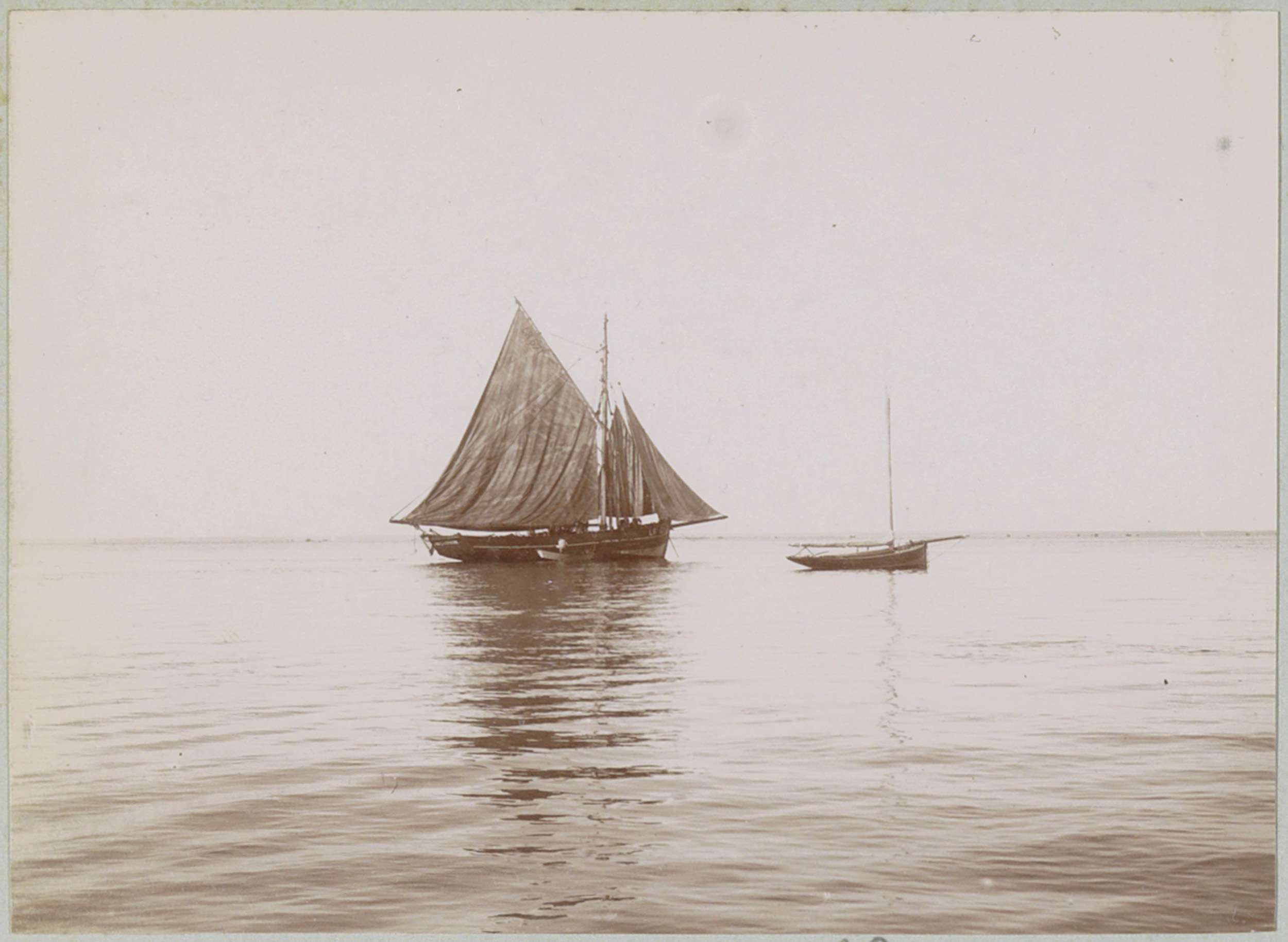 Twee zeilboten op zee, vermoedelijk ter hoogte van L...