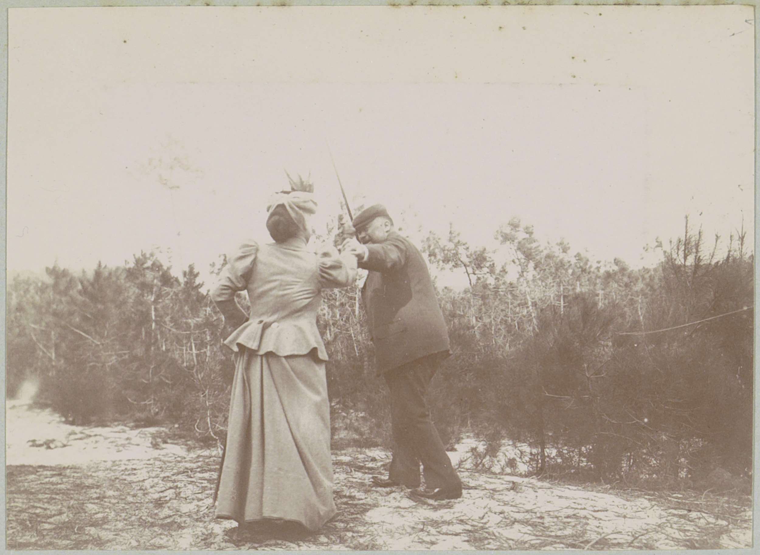 Man en een vrouw, vermoedelijk dansend op een pad bi...
