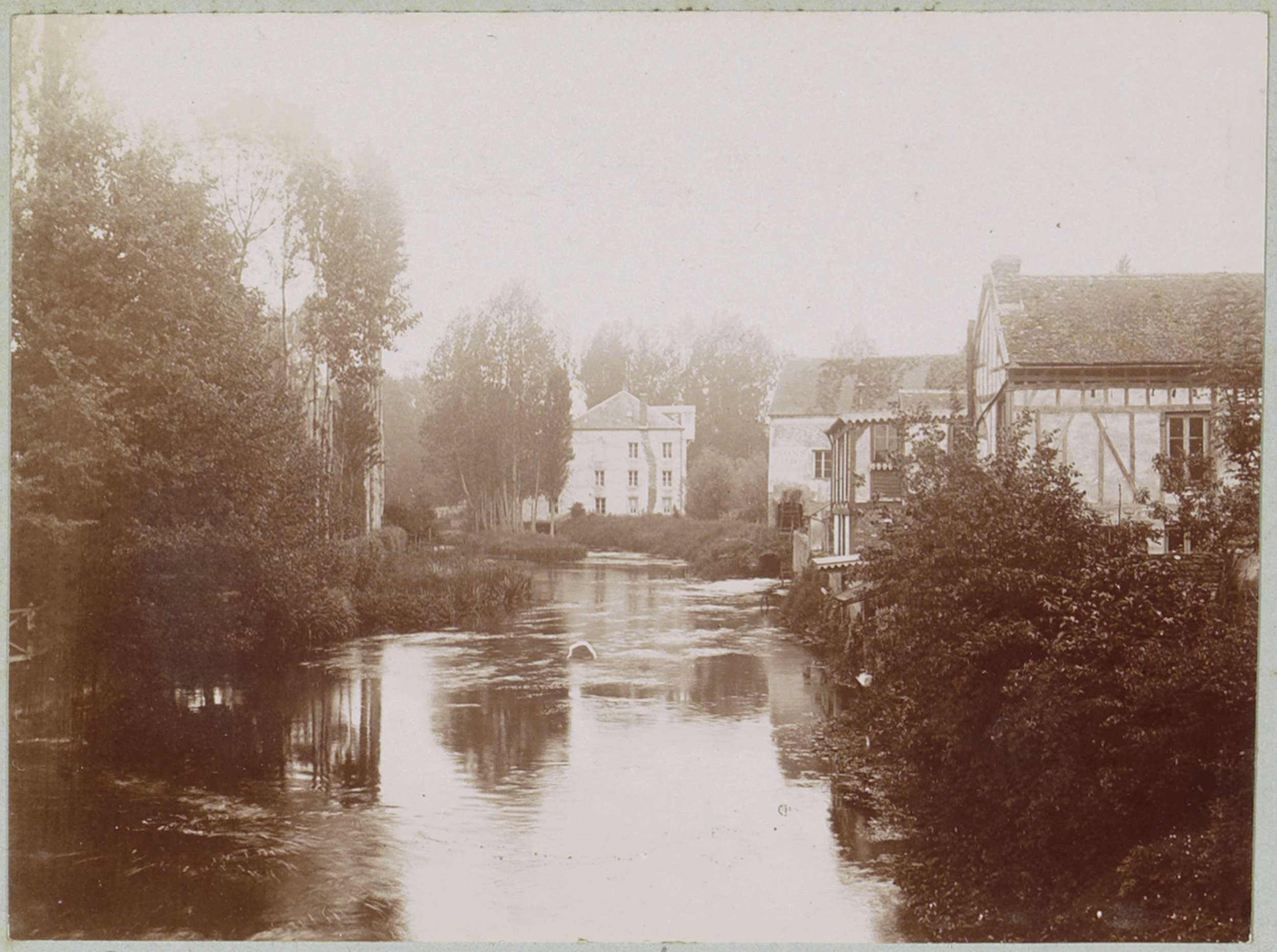 Gezicht op een water en bomen op oevers in Pacy-sur-...
