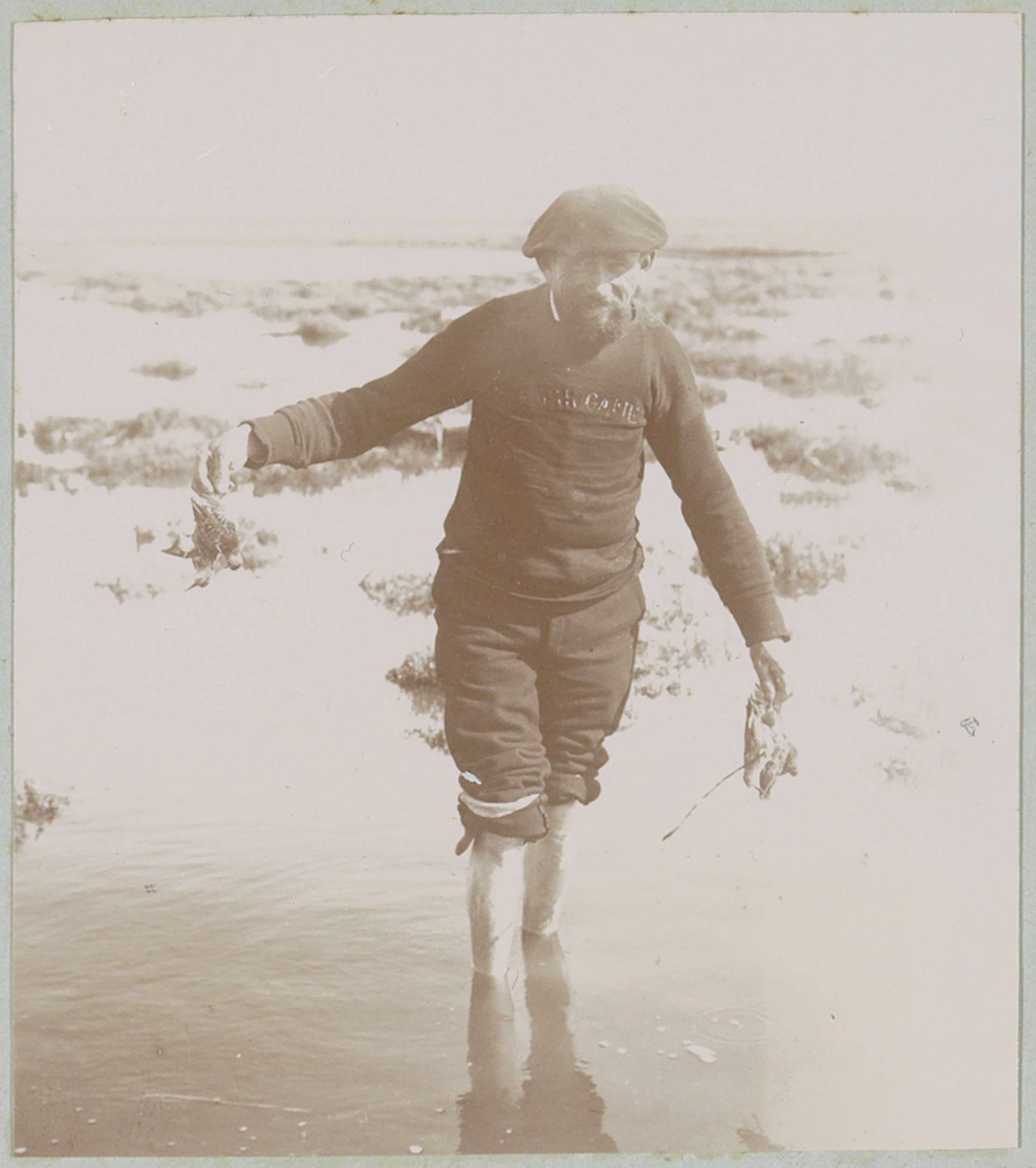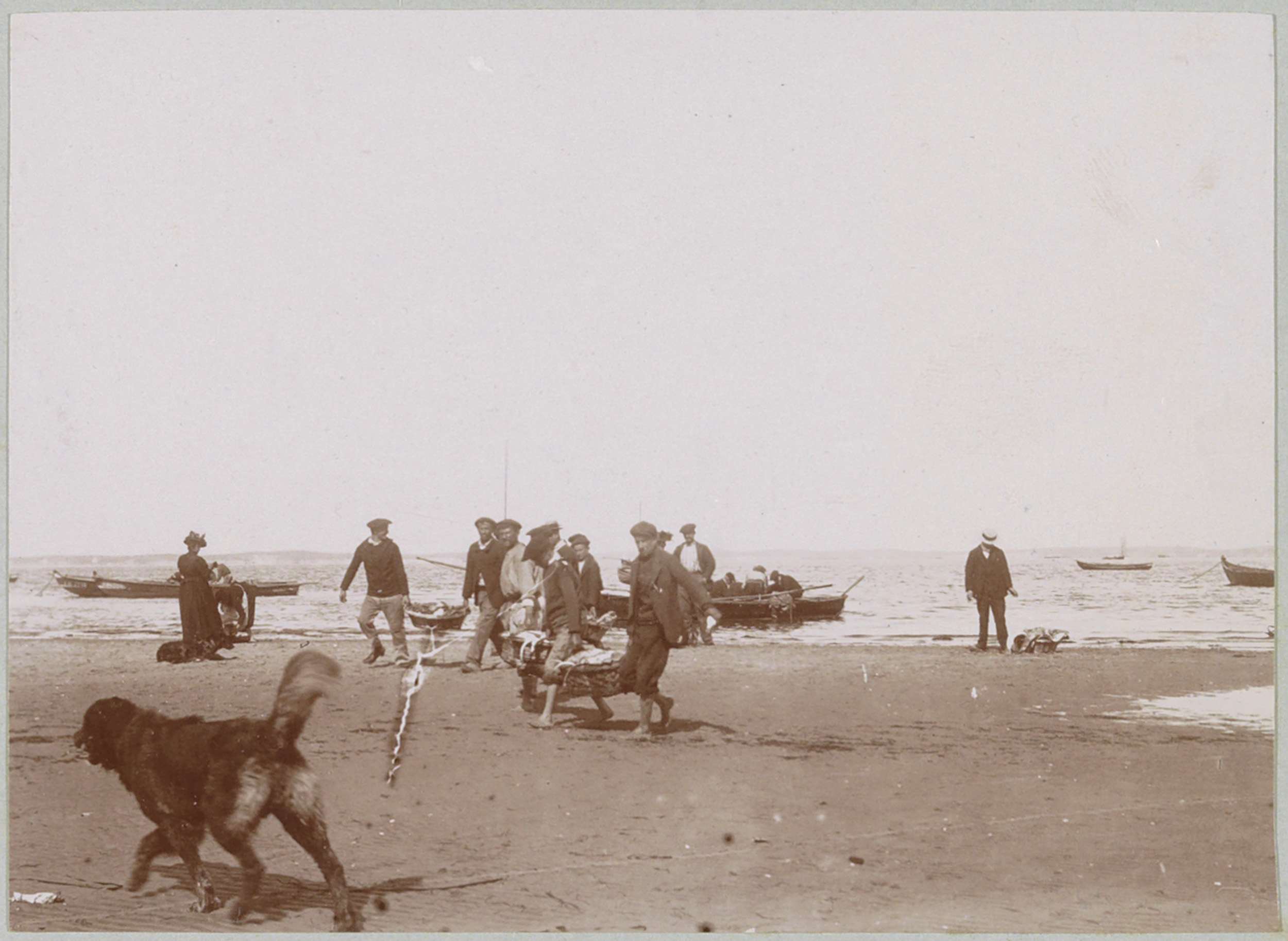 Vissers brengen manden aan land, vermoedelijk bij Ar...