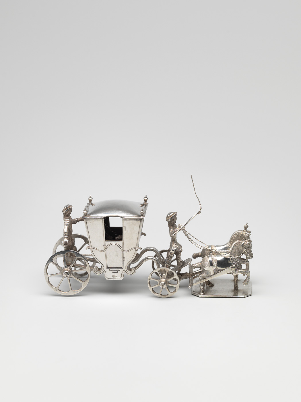 Karos met twee paarden, koetsier en palfrenier