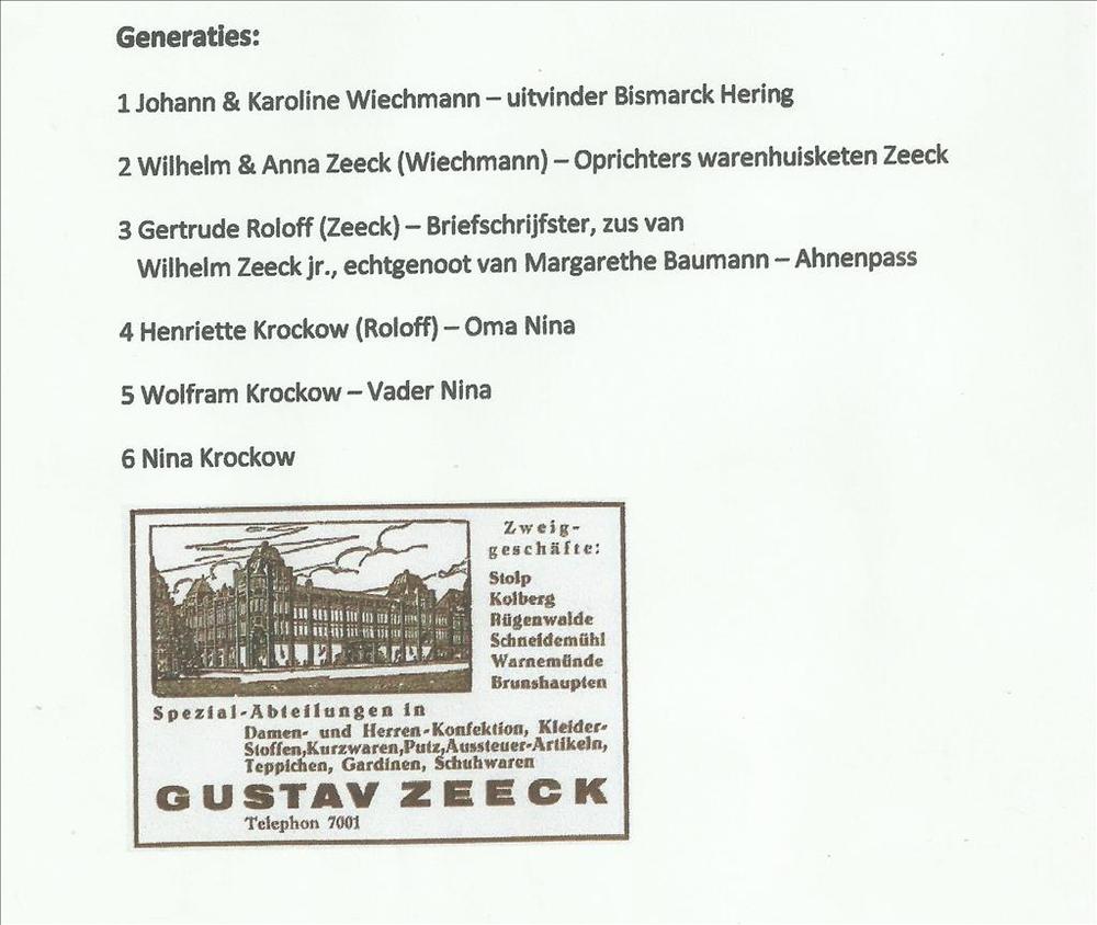 Generaties, stamboomreeks van de familie Zeeck-Wiechman