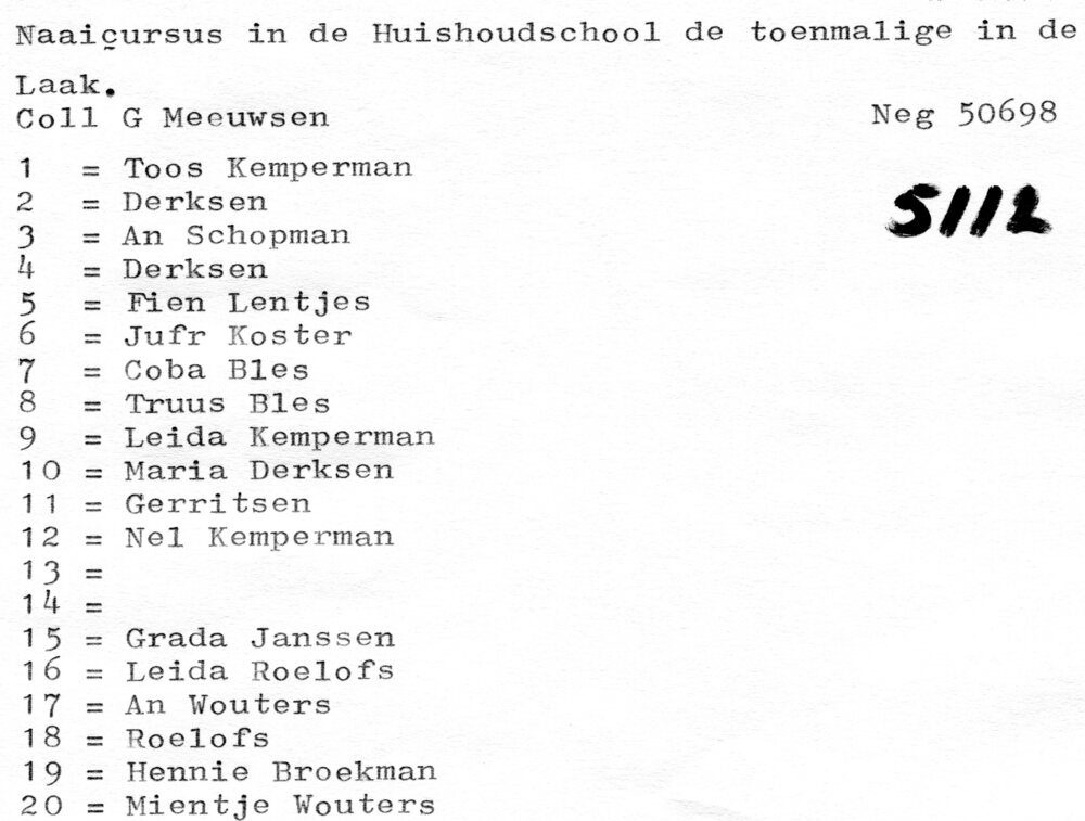 Naaicursus Huishoudschool in de Laak (Thans Huismans...