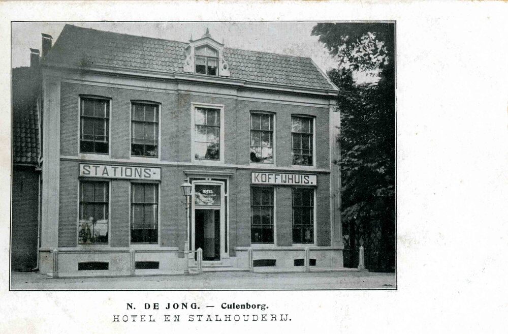 Ansichtkaart, voorstellende het stationskoffiehuis a...