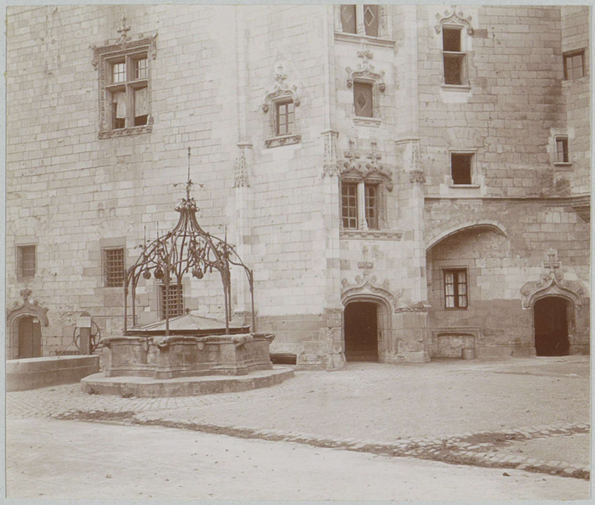 Geornamenteerde waterput bij een gebouw in Frankrijk