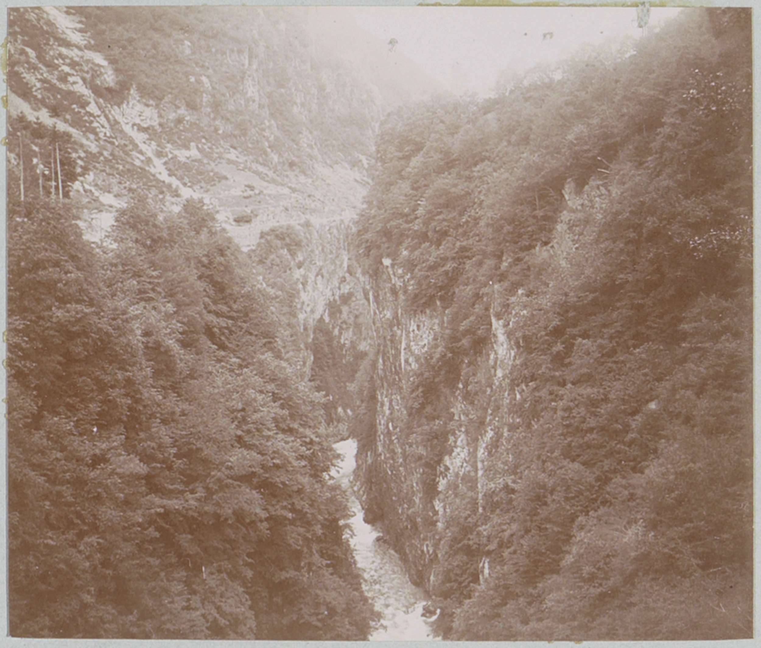 Kloof met een beek, vermoedelijk in de Pyreneeën