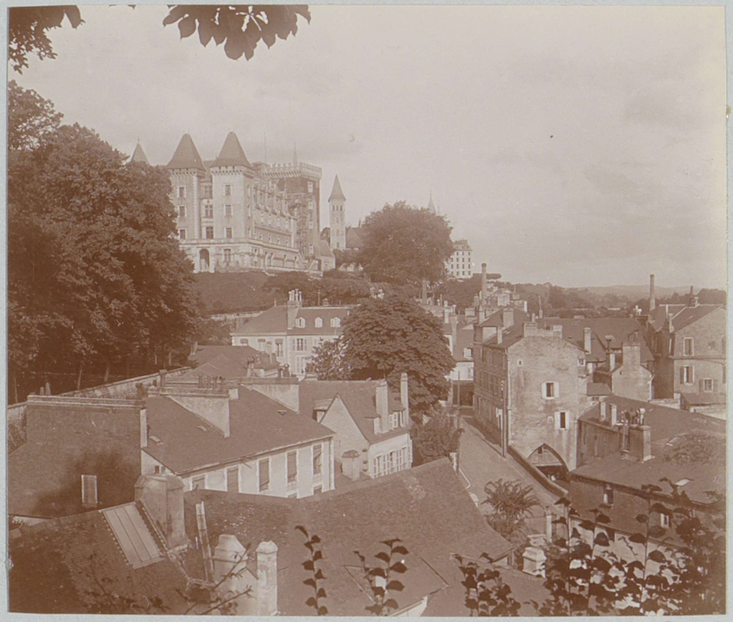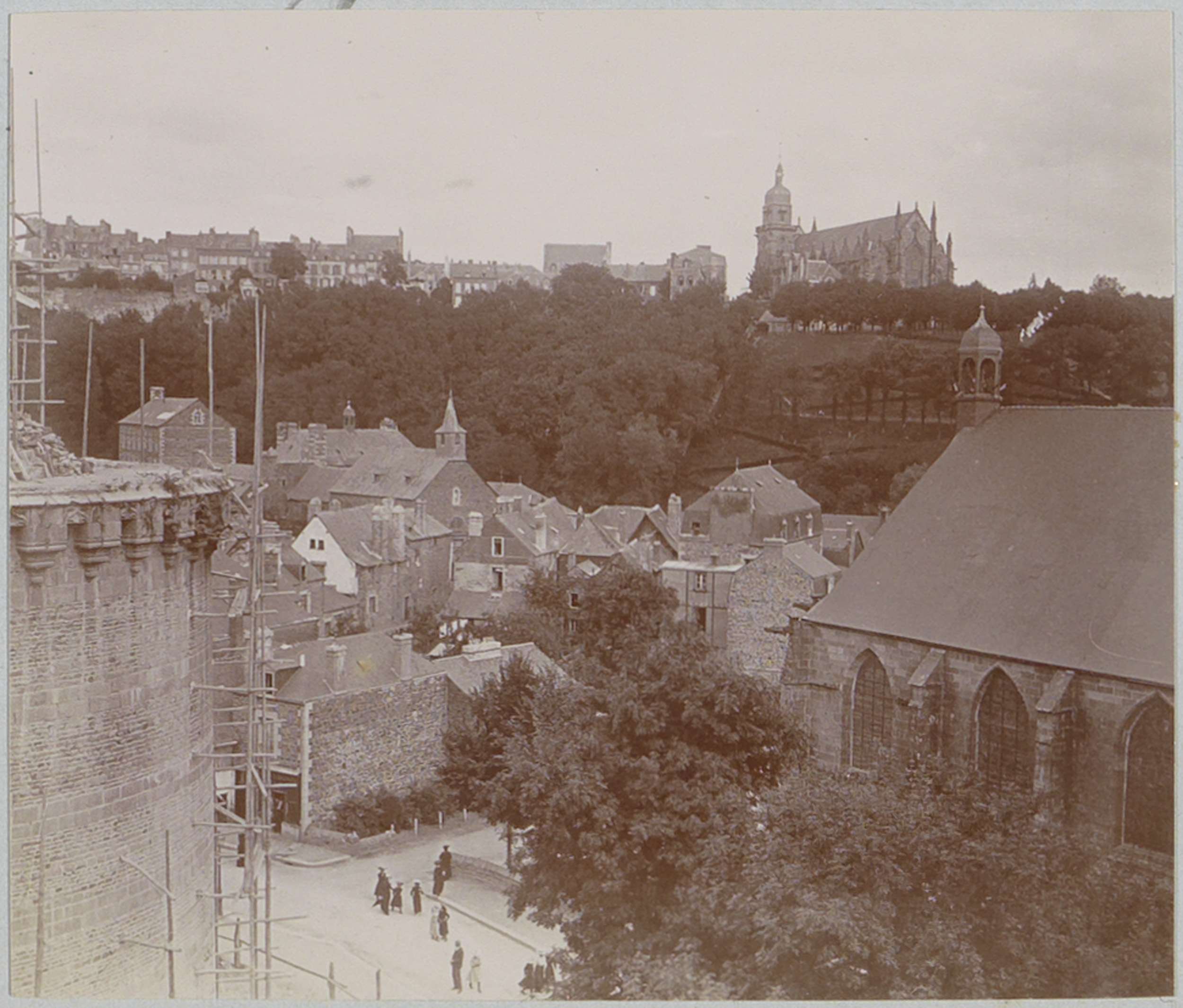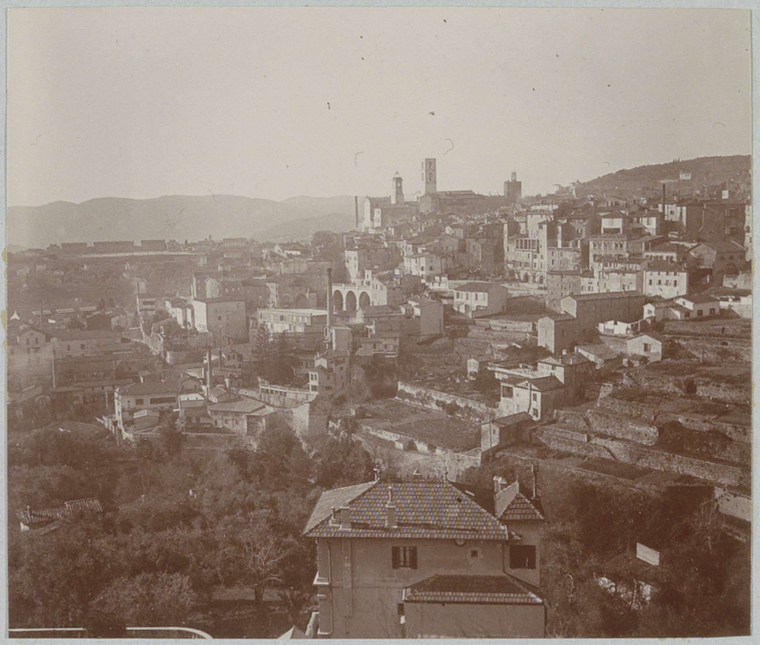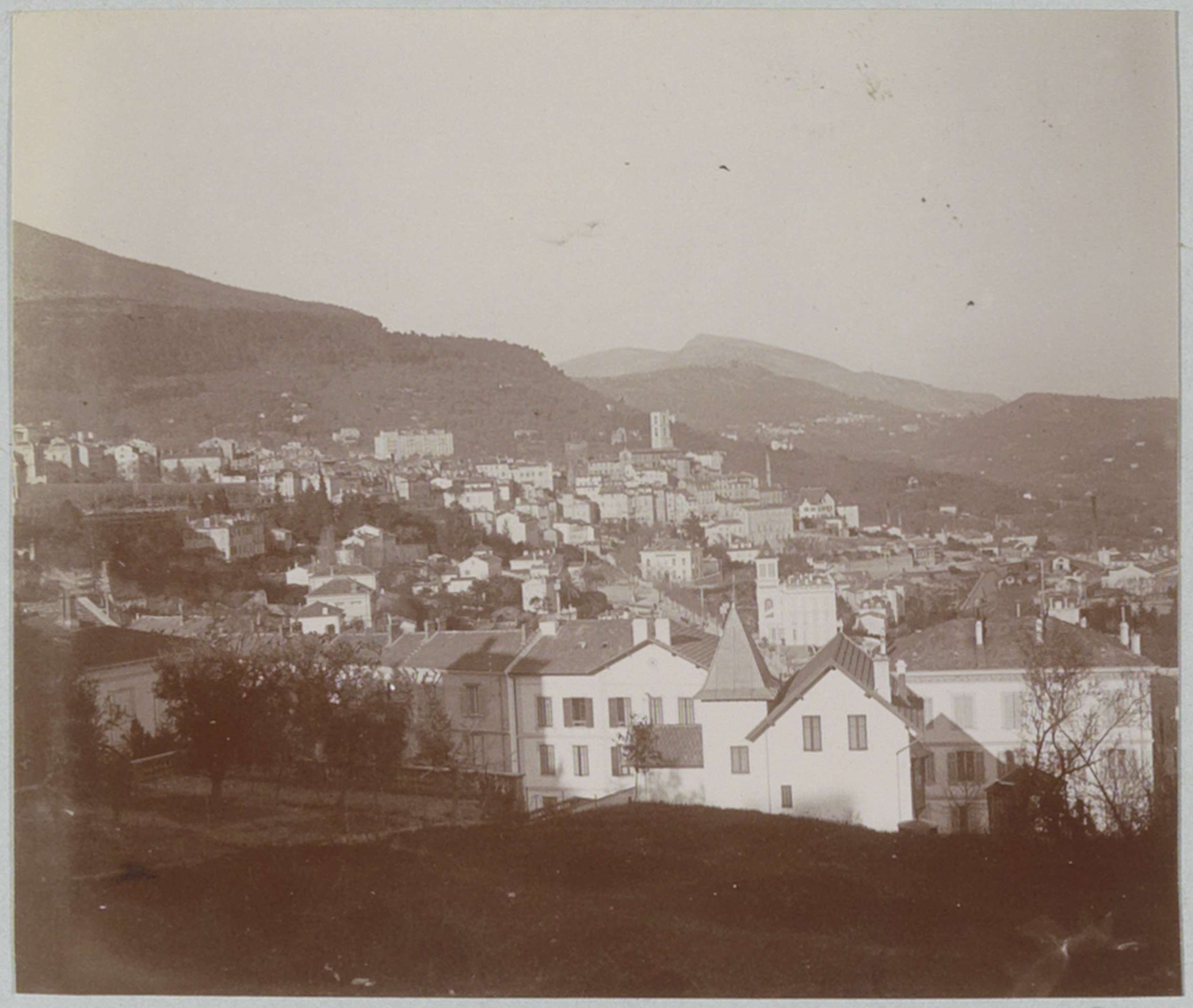 Gezicht op een stad in Frankrijk met een hooggelegen...