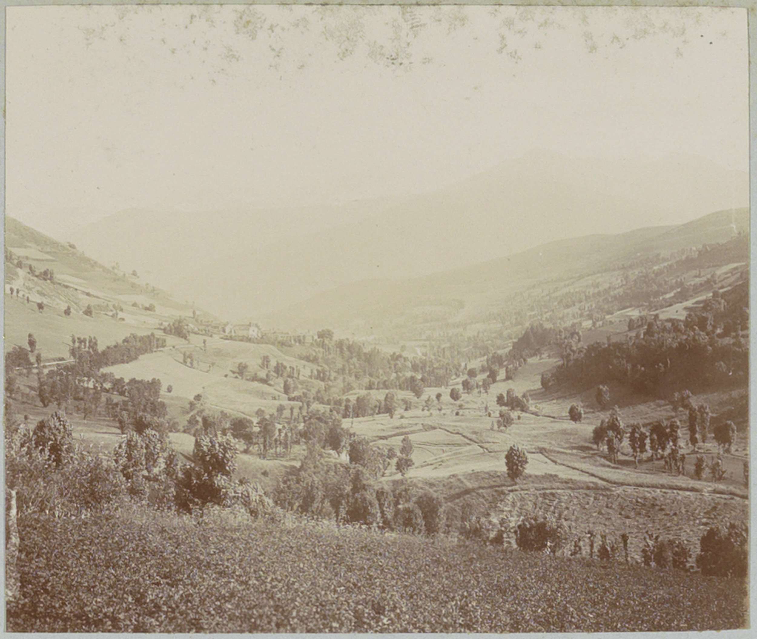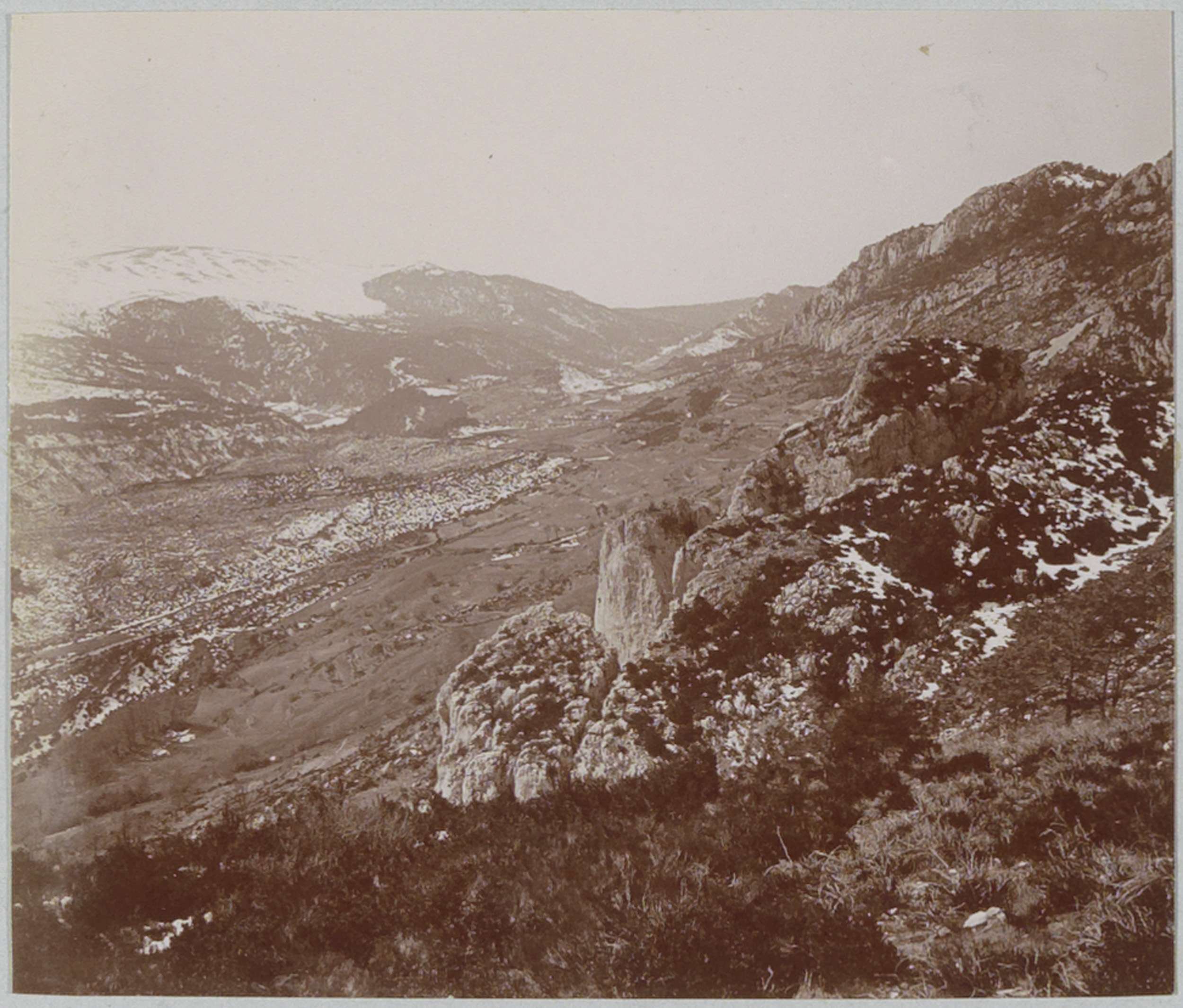 Gezicht op een stad in de bergen, vermoedelijk in Zu...