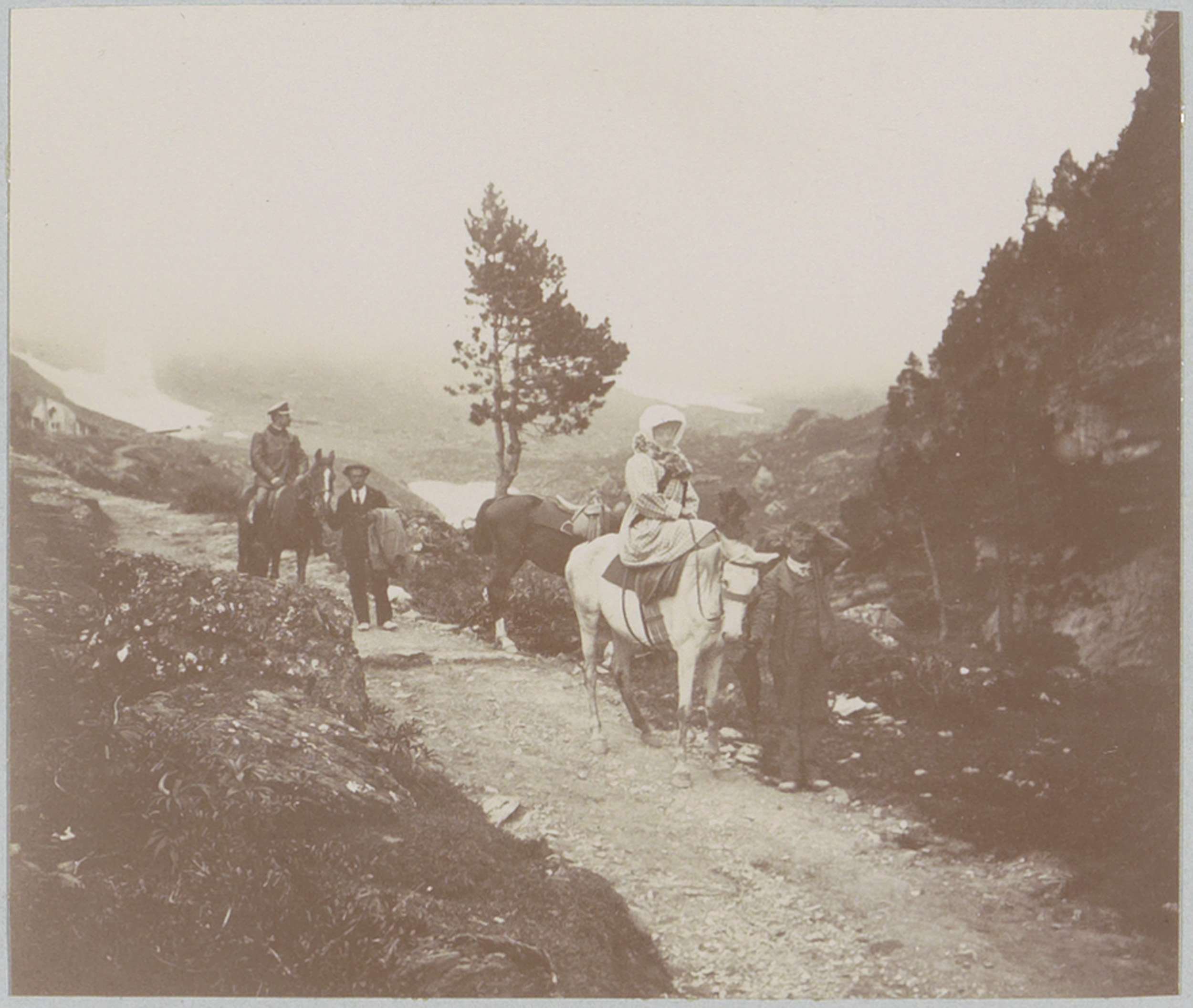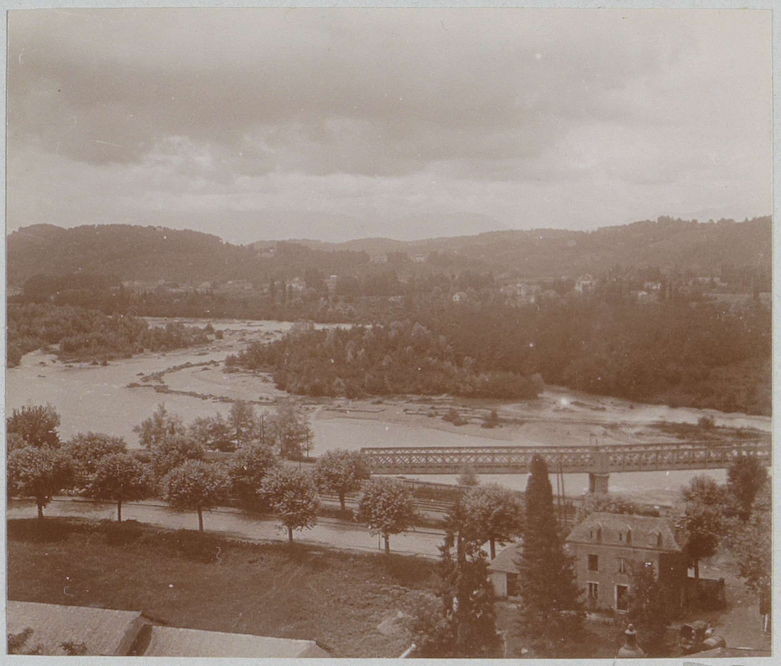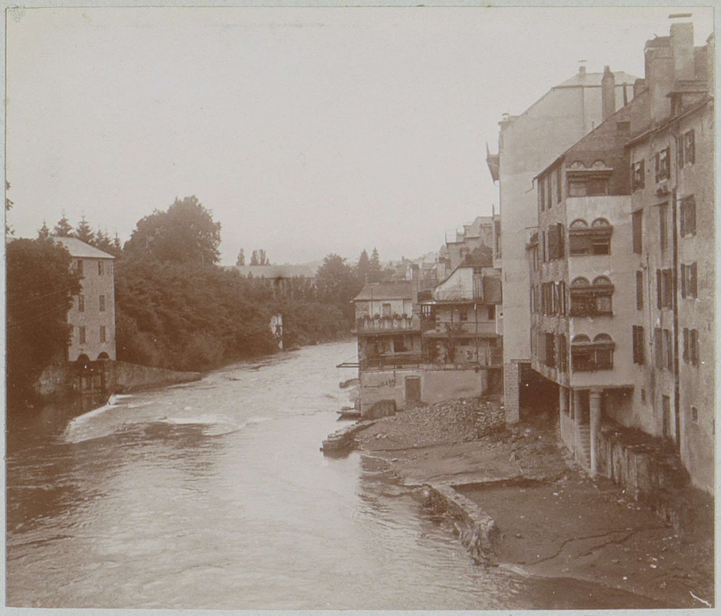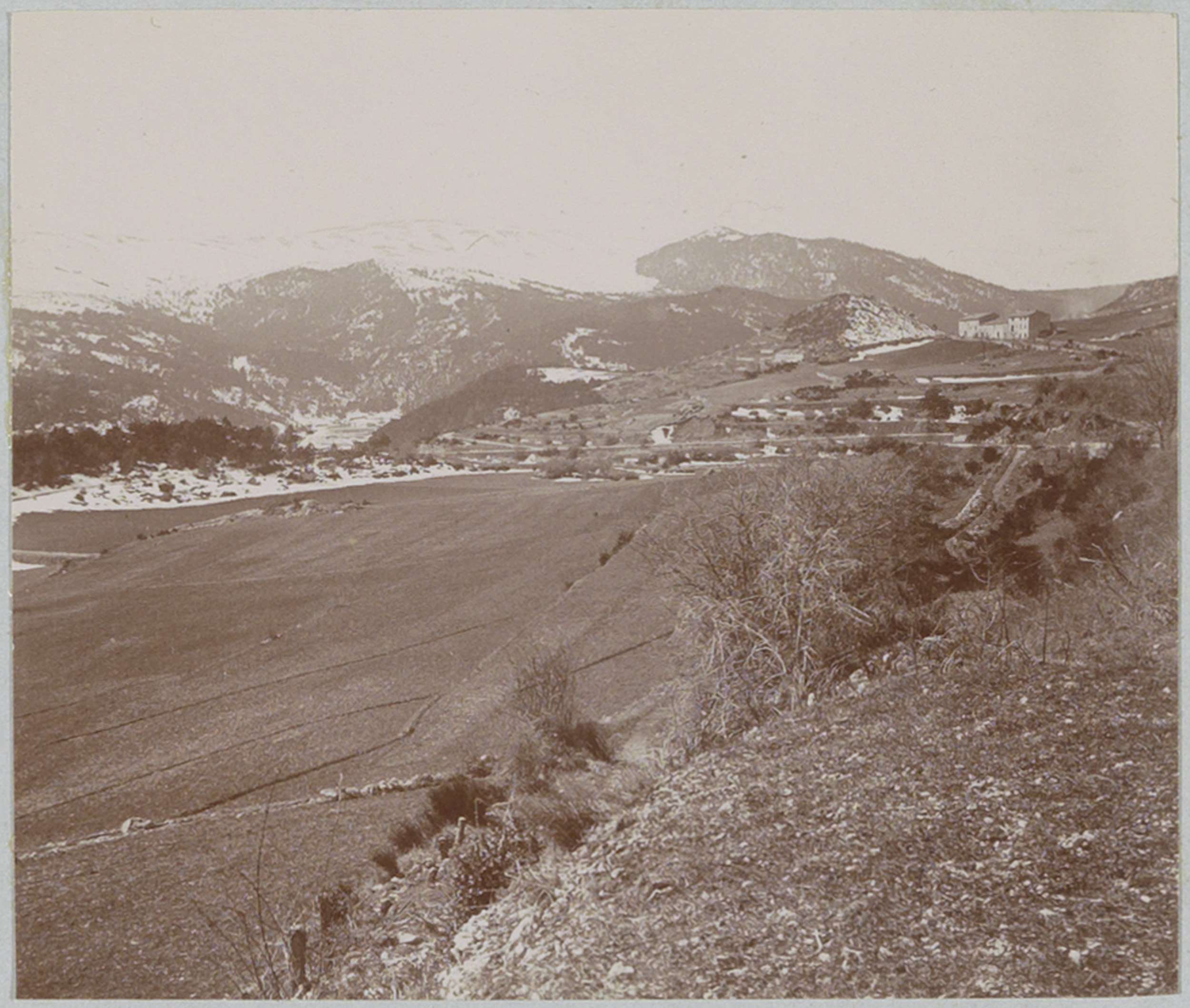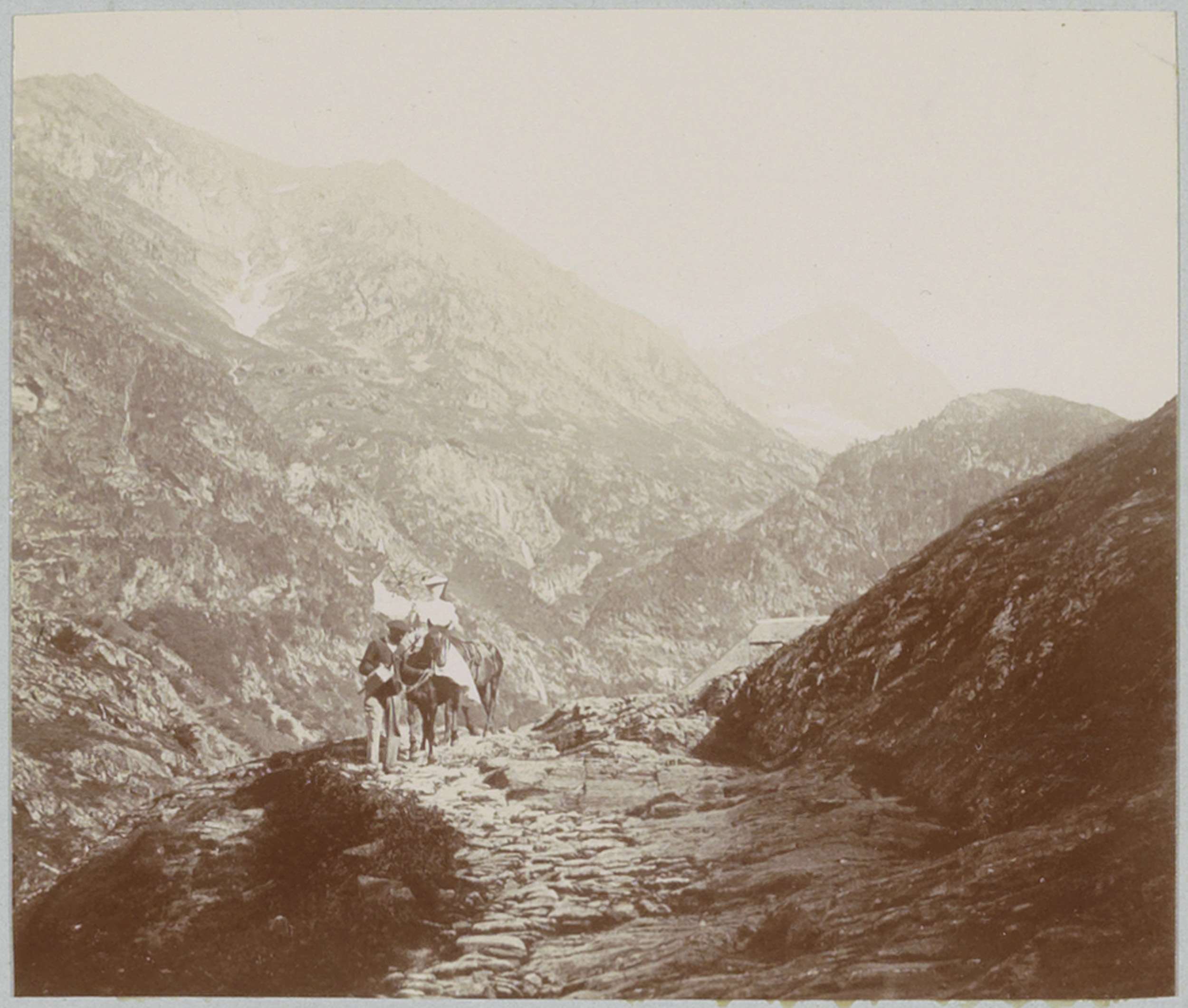 Bergbeek met schuren erlangs, vermoedelijk in de Pyr...