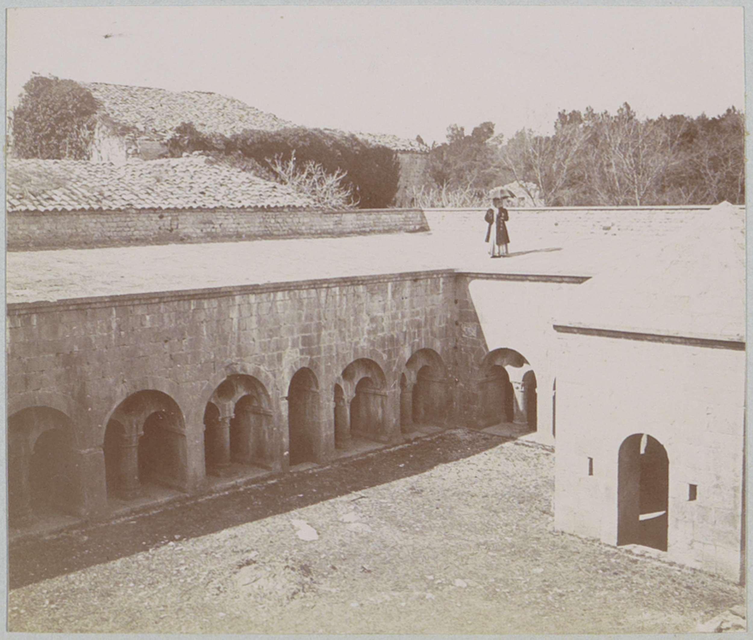 Kerktoren en kloostergang vermoedelijk in Zuid-Frank...