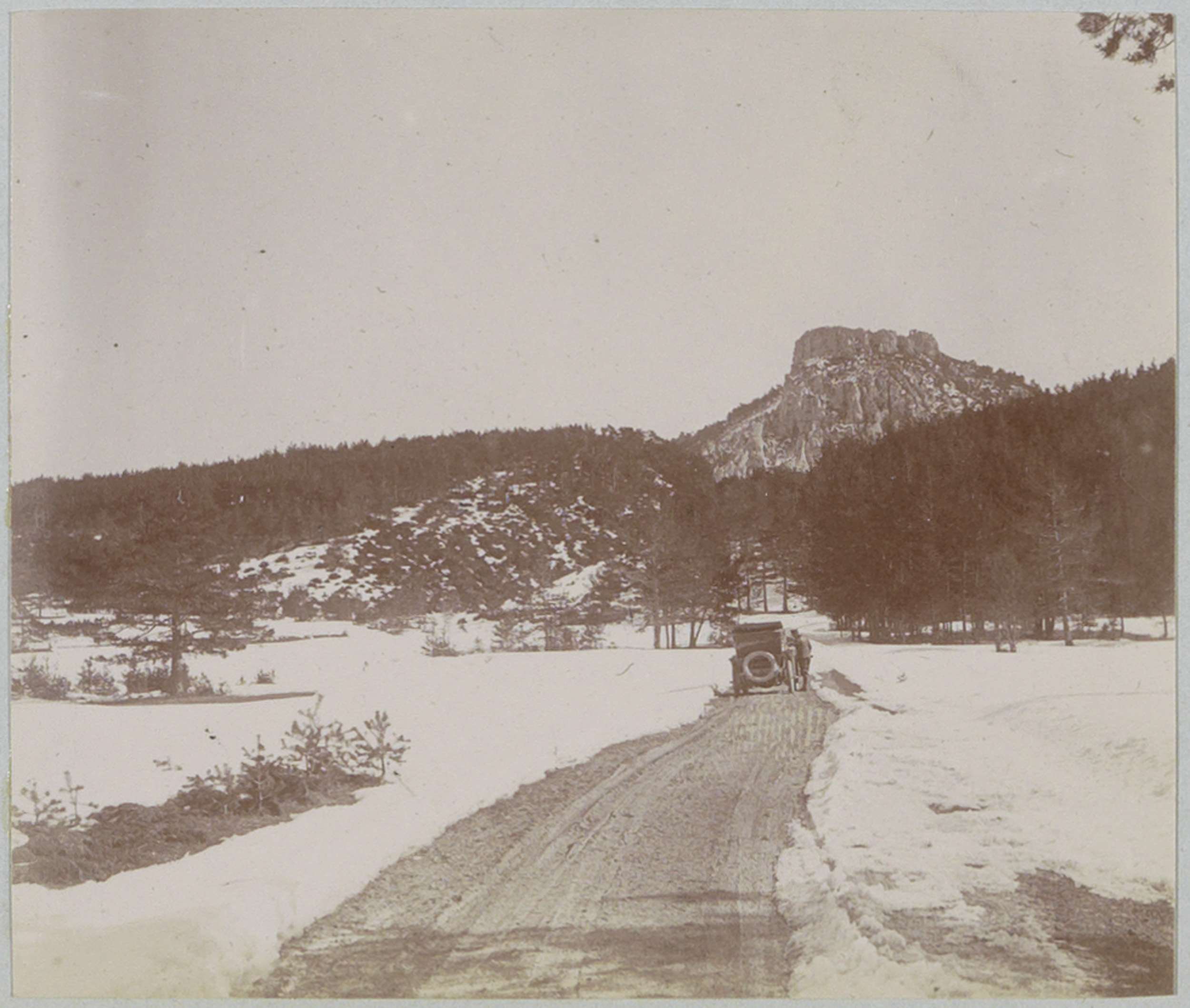 Auto in een sneeuwlandschap, vermoedelijk in Zuid-Fr...