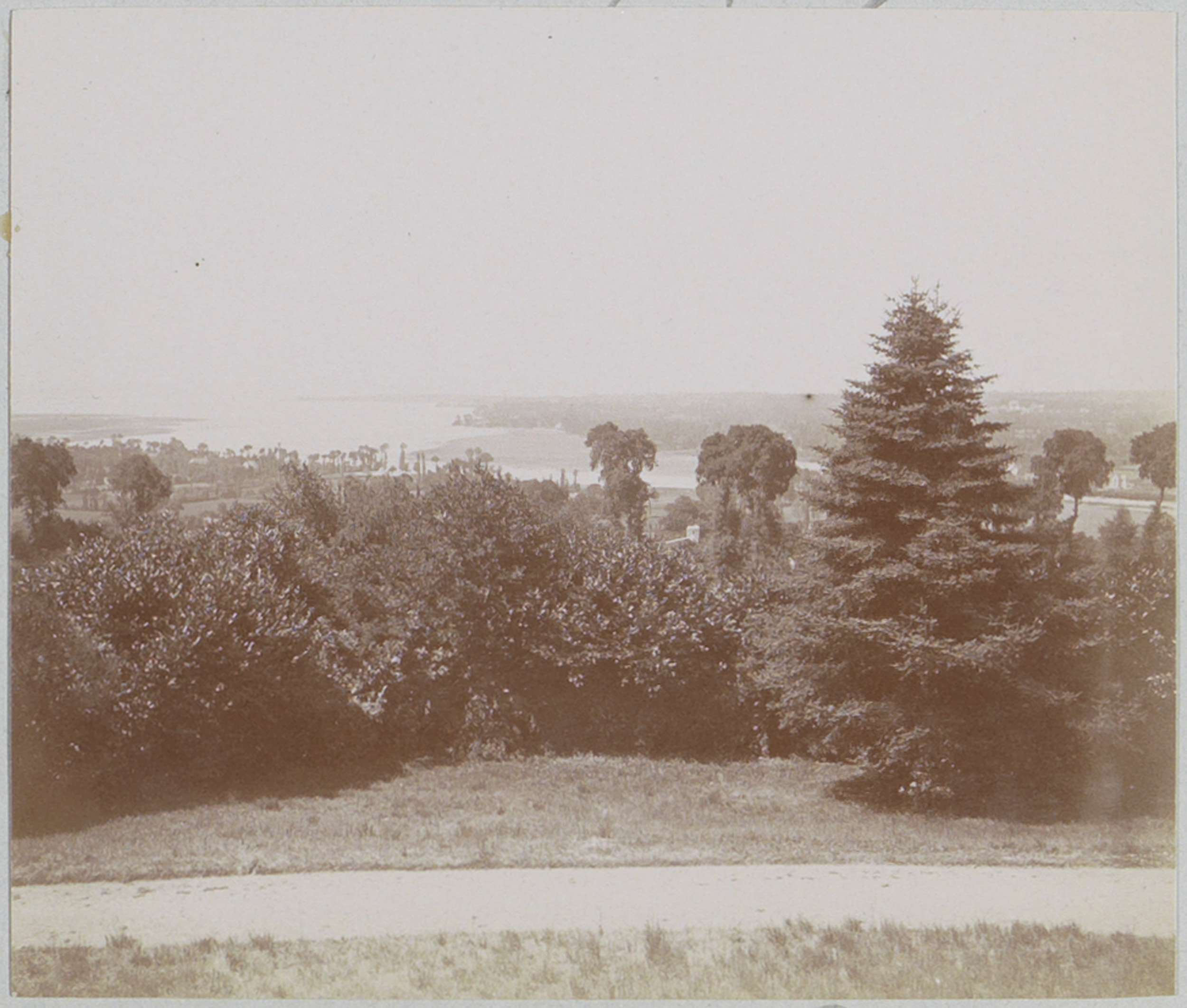 Gezicht op een stad met een hooggelegen kasteel, ver...