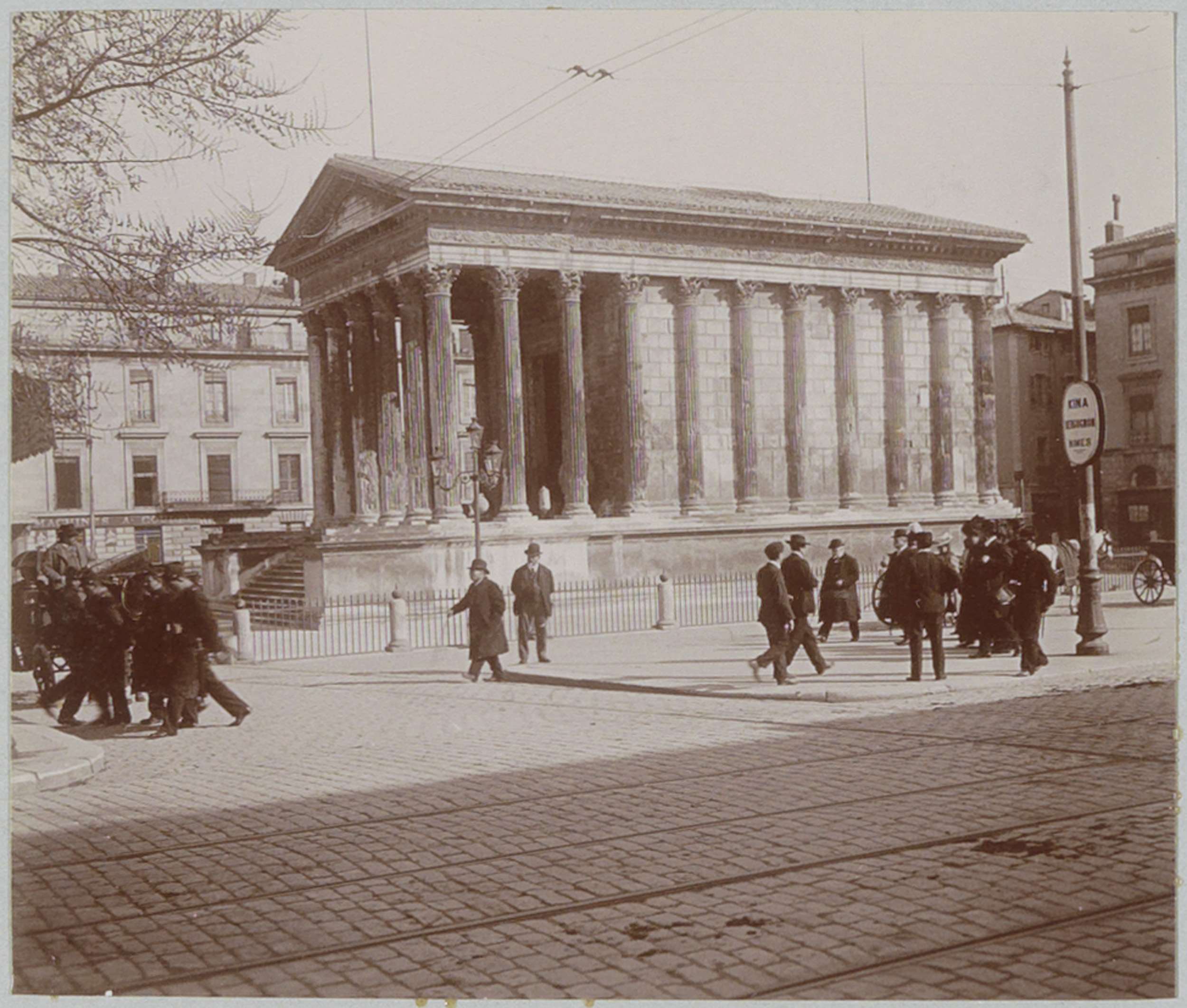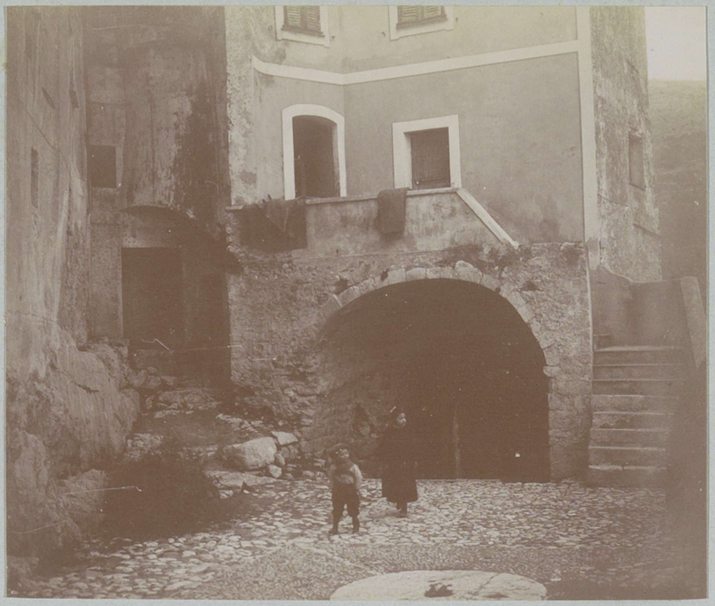 Twee kinderen voor een huis, vermoedelijk in Zuid-Fr...