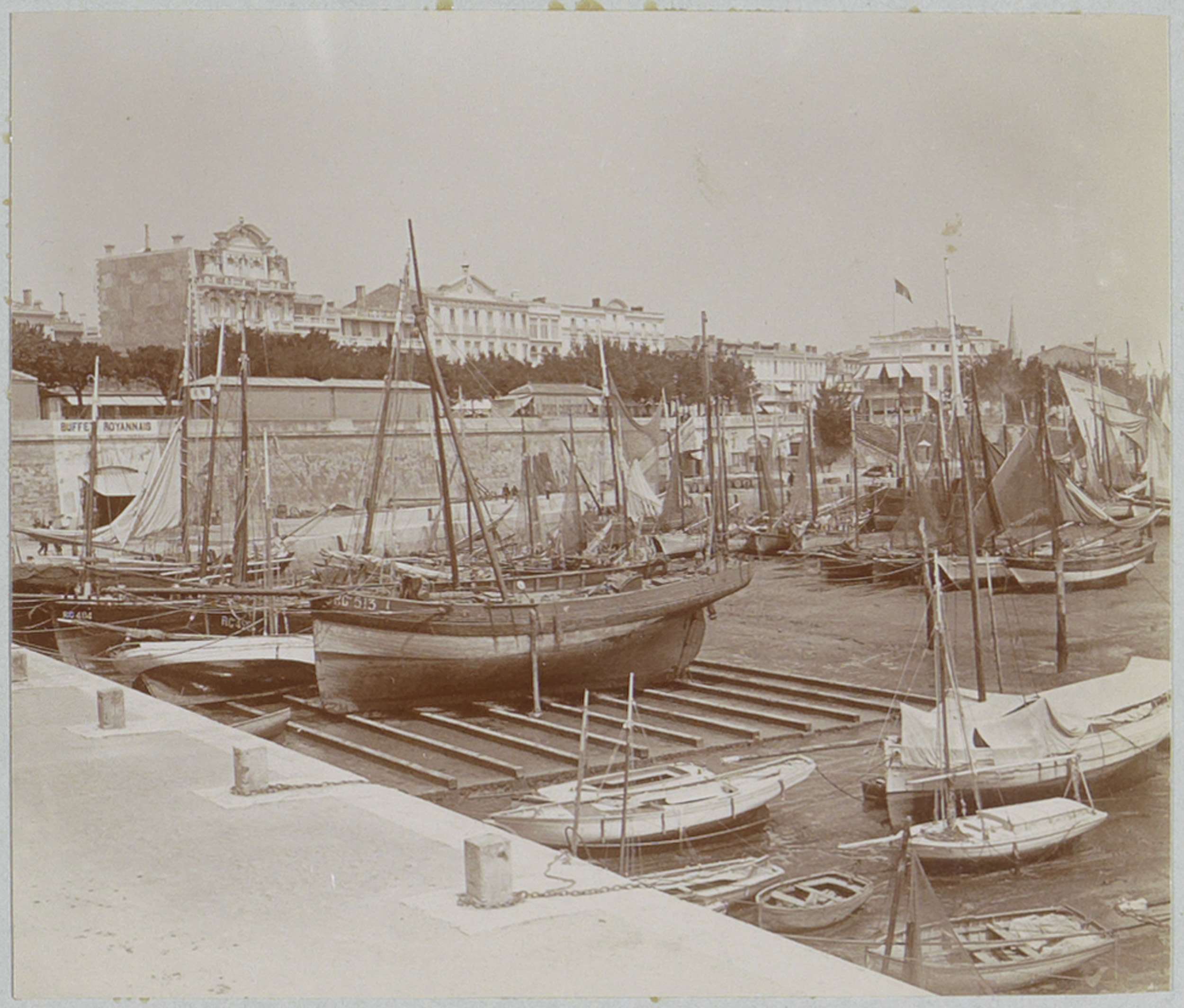 Gezicht op een haven in Frankrijk met zeilboten en pier