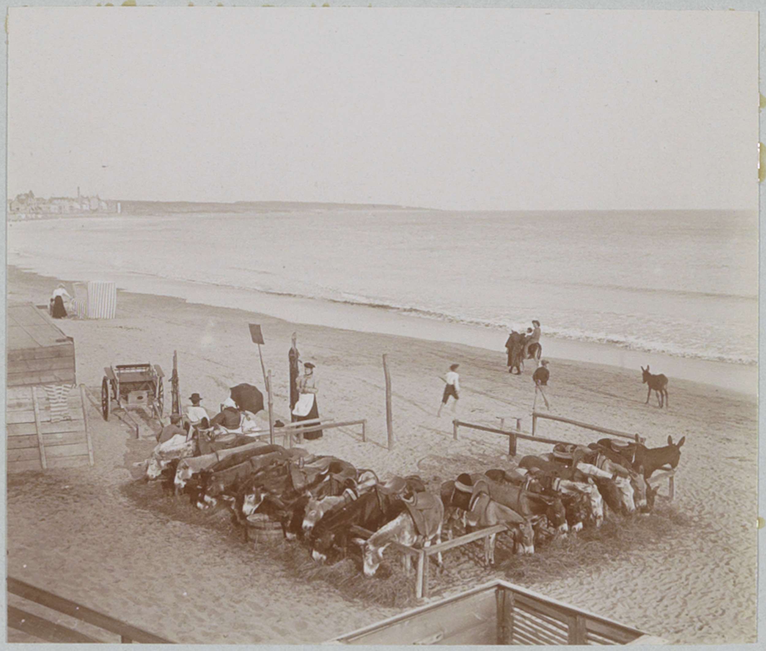 Ezels op het strand, vermoedelijk bij La Rochelle
