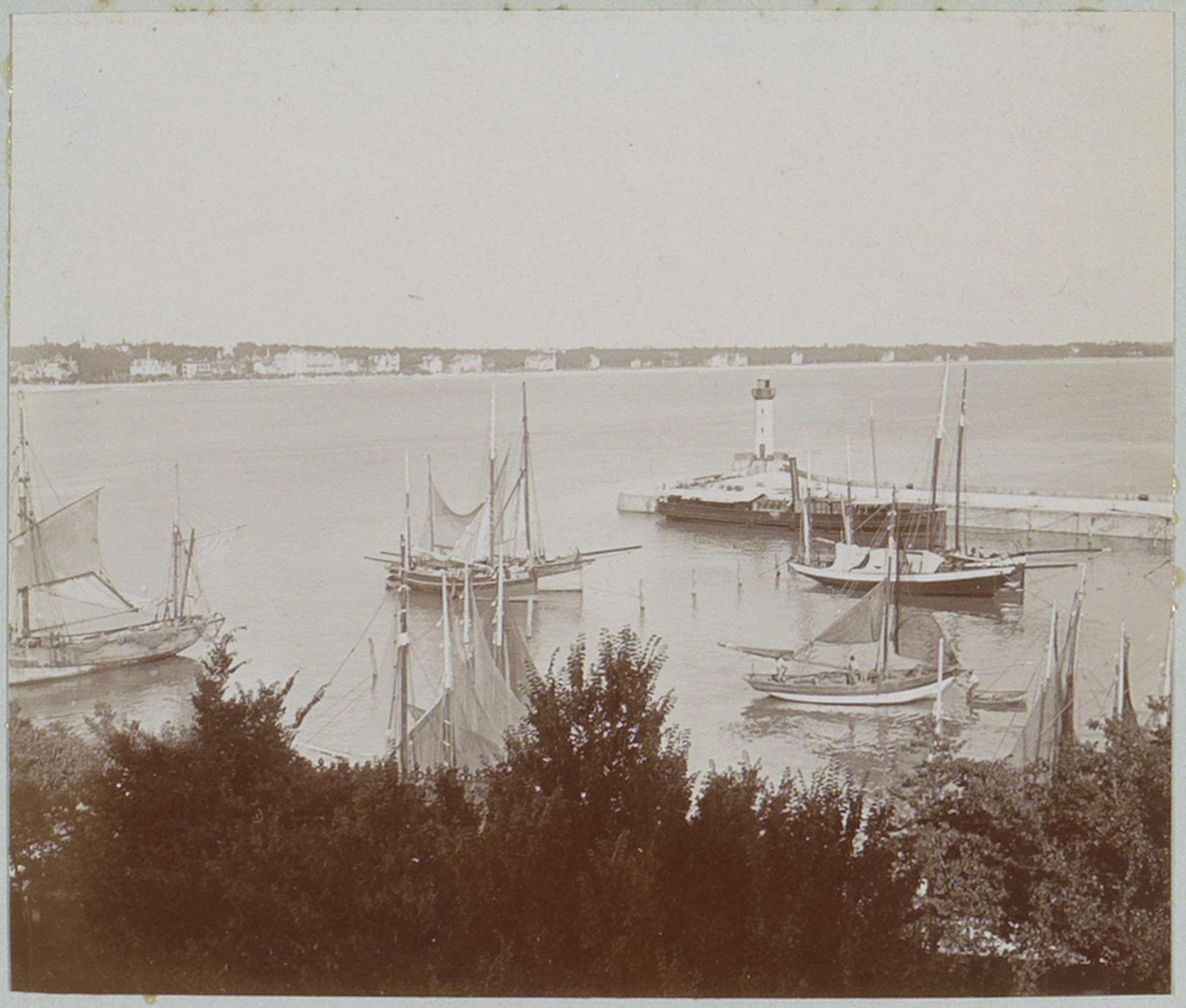 Gezicht op een haven aan zee, vermoedelijk aan de Fr...