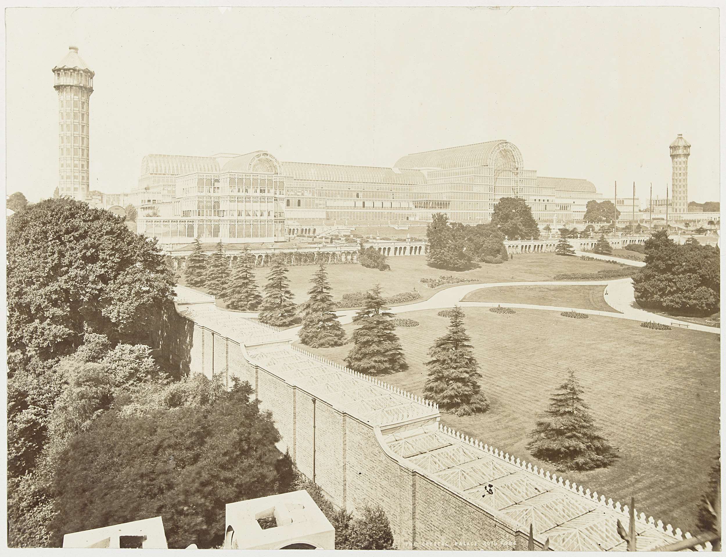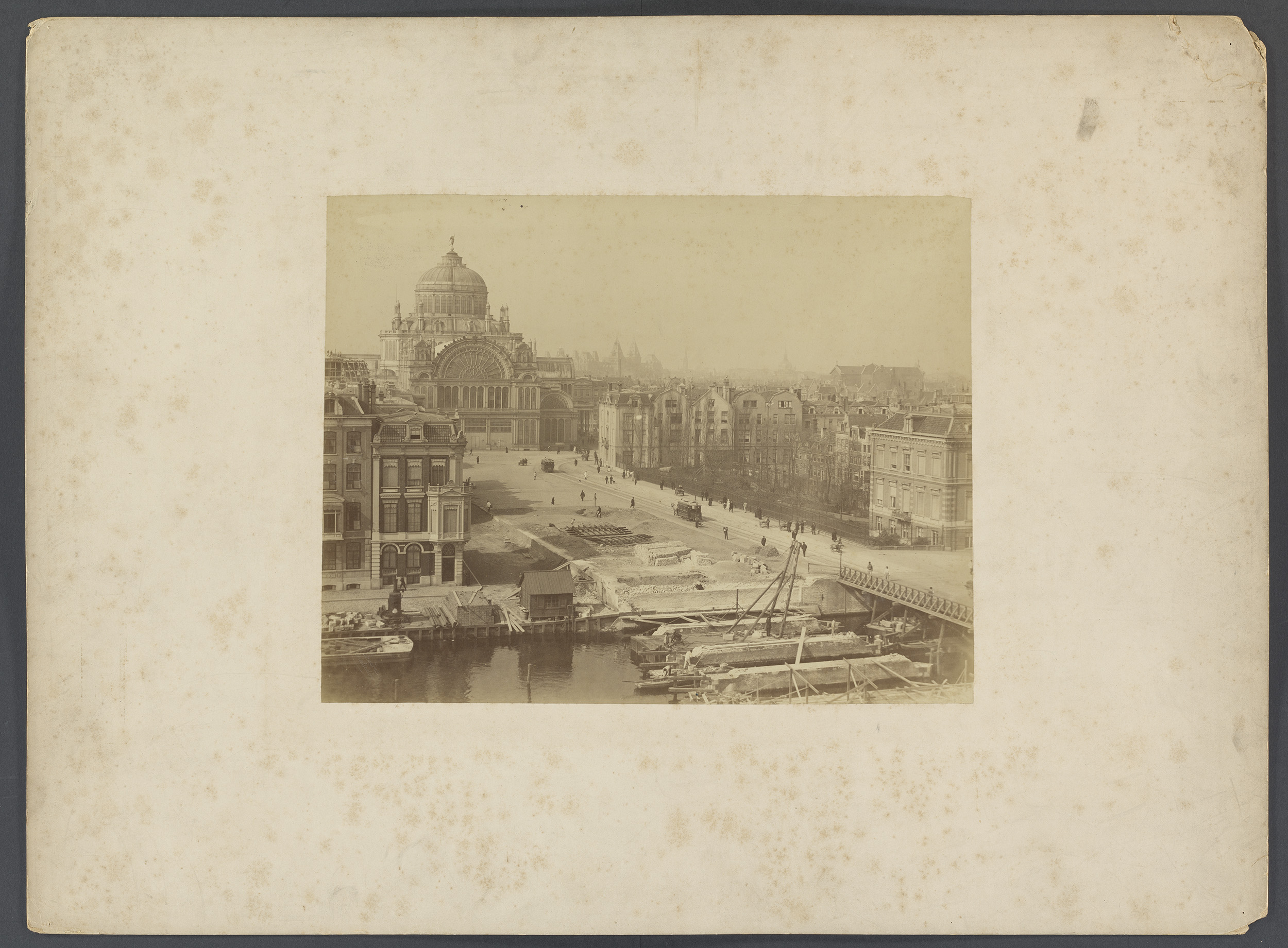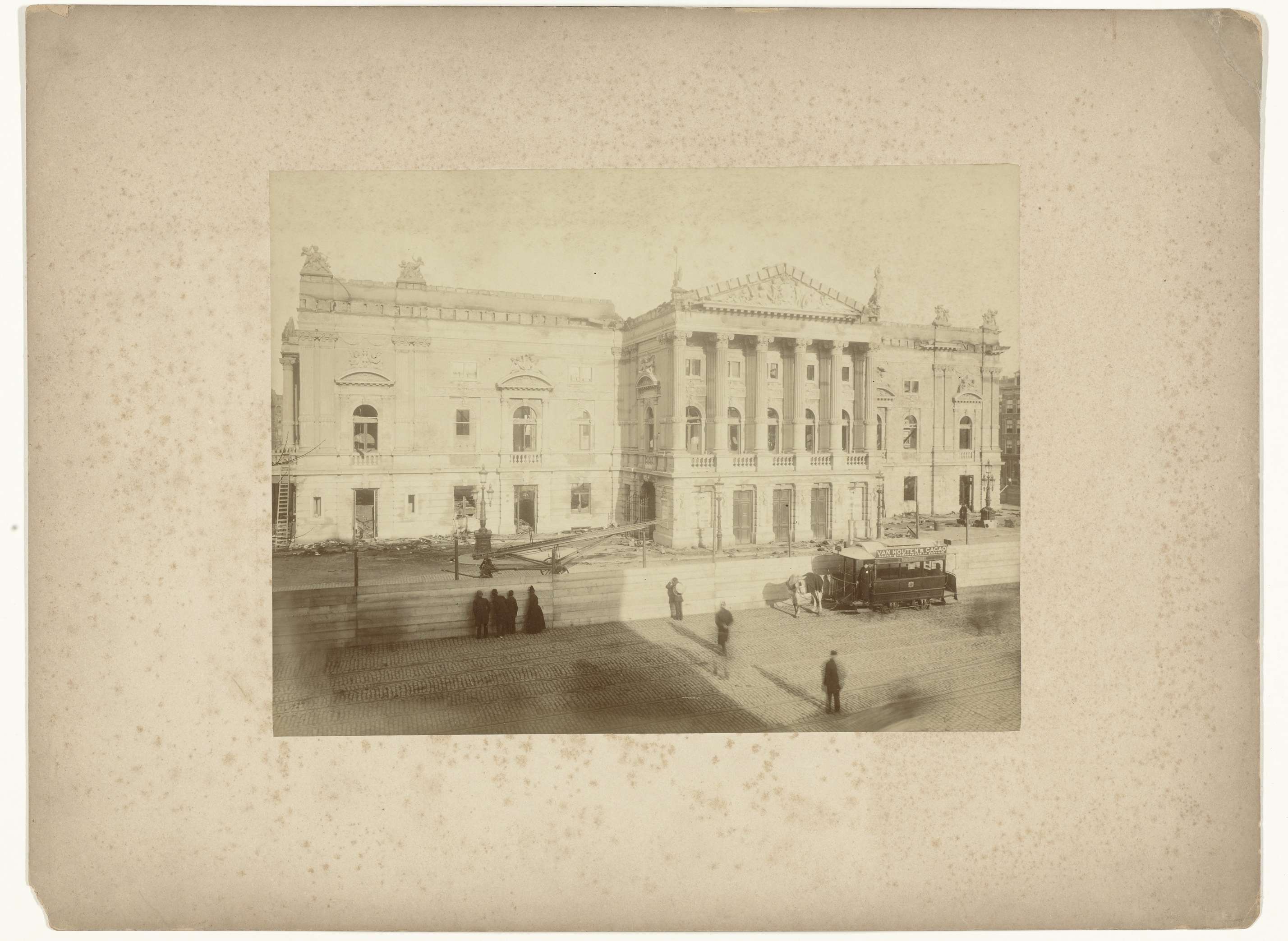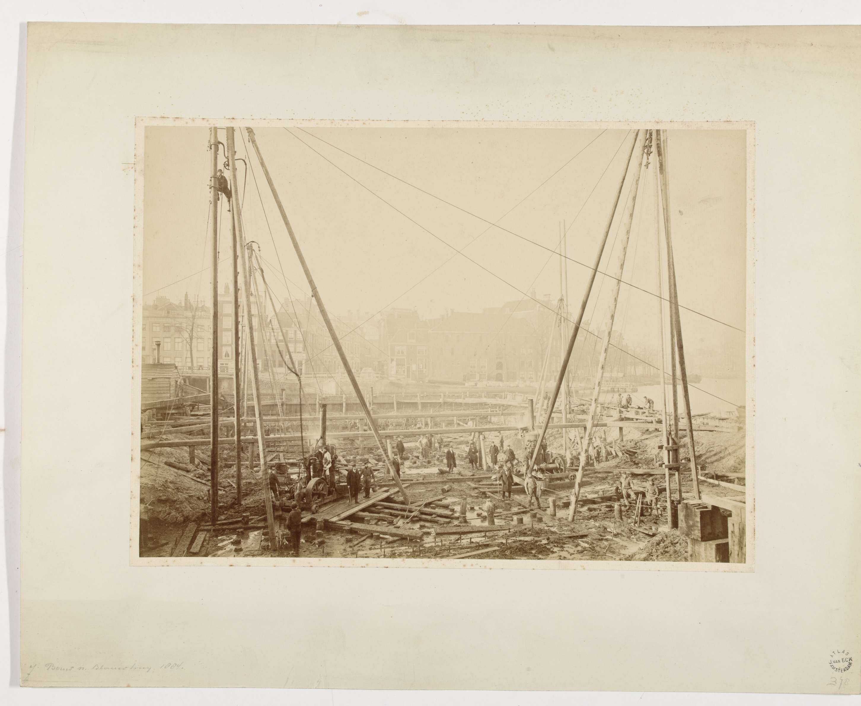 Bouw van de Hogesluis met het Paleis voor Volksvlijt...