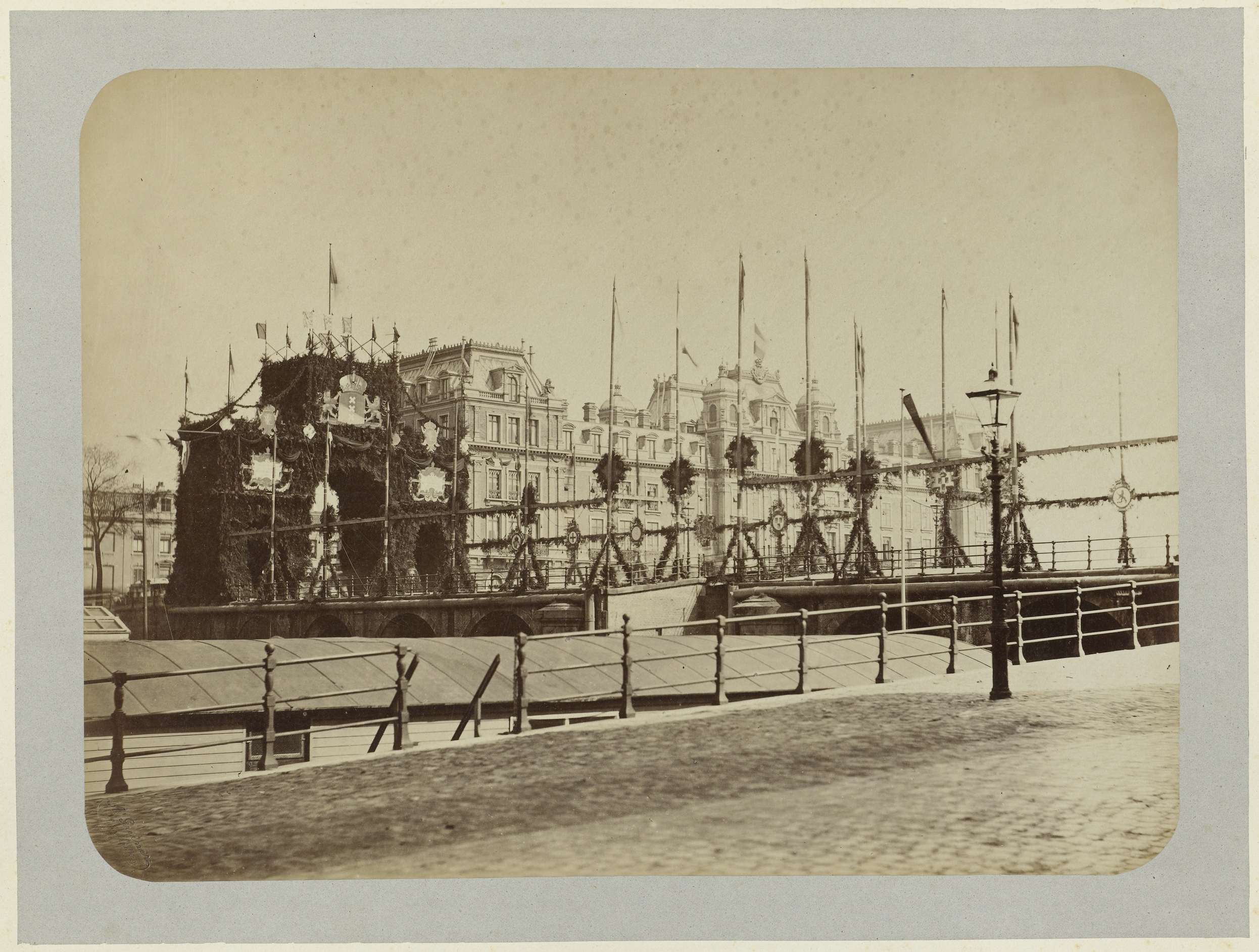 Decoratie bij de Hogesluis voor de ontvangst van Wil...