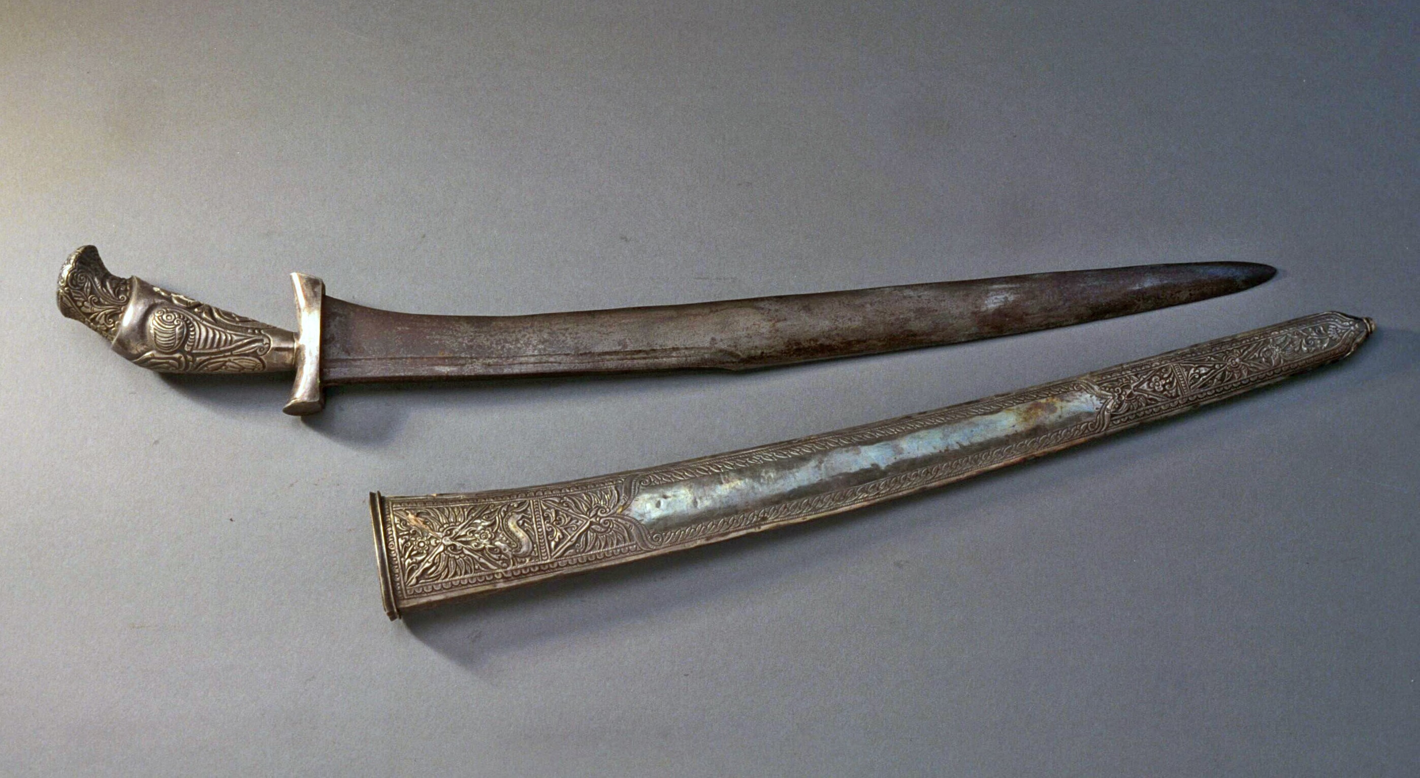 IJzeren zwaard met een zilveren greep en een zilvere...