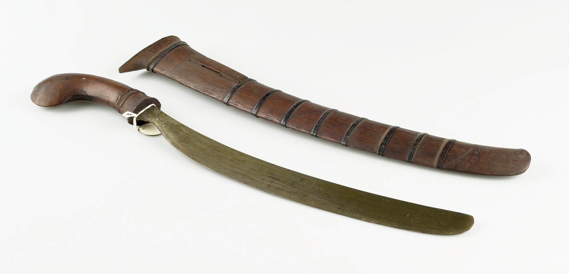 IJzeren hakmes met houten greep en schede