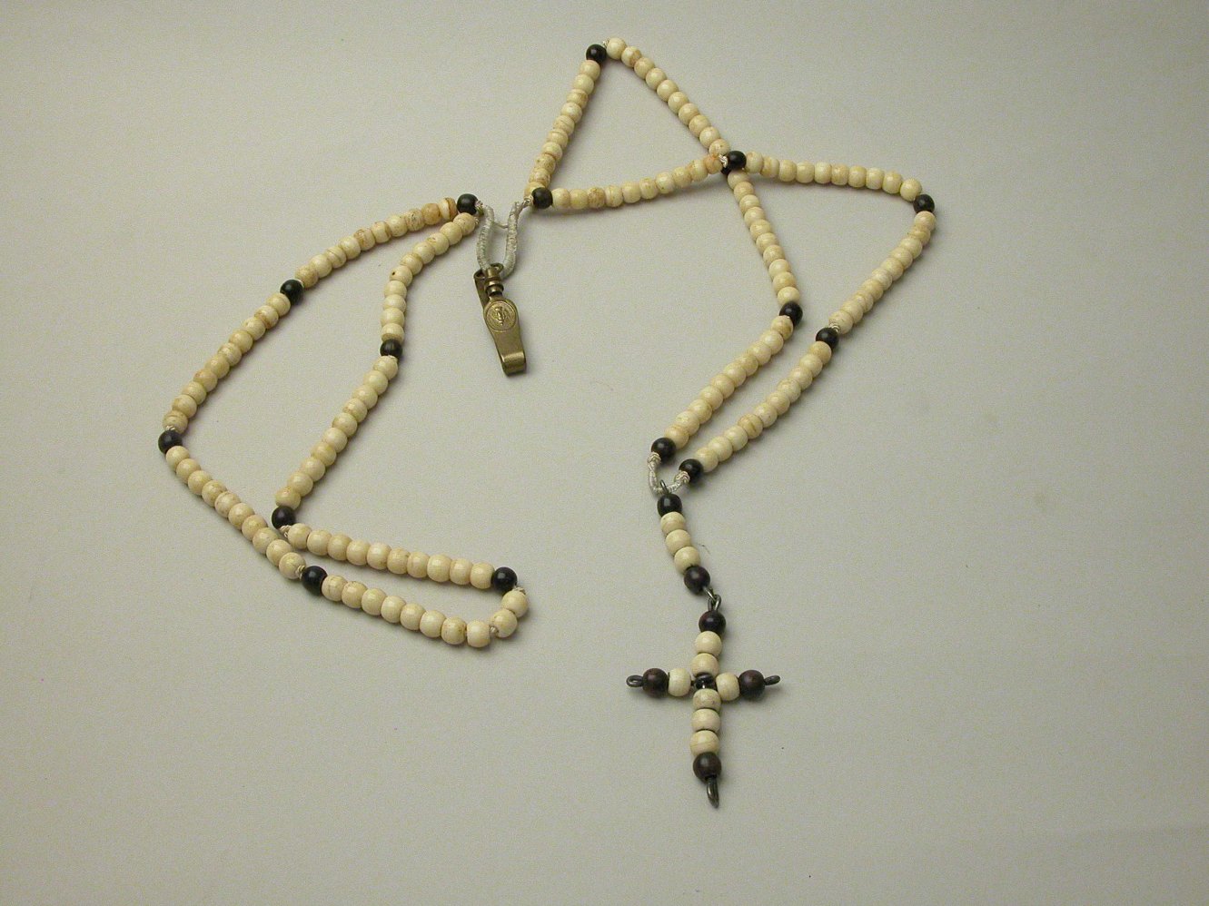 Rozenkrans van witte en zwarte kralen met koperen ha...