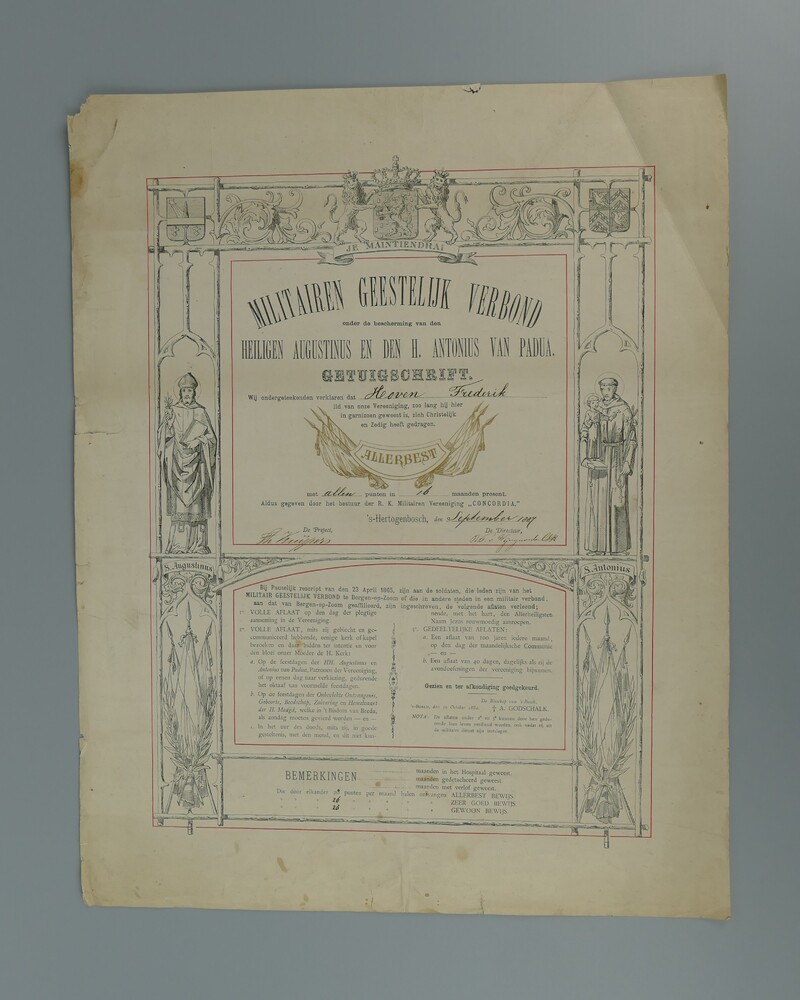 Getuigschrift van het Militairen Geestelijk Verbond,...