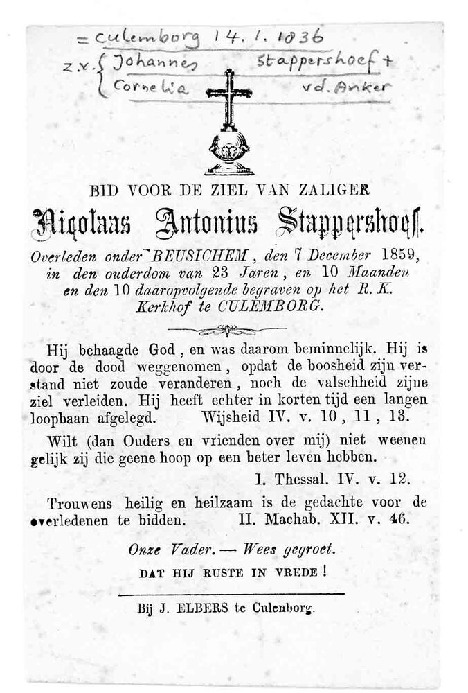 bidprent voor Nicolaas Antonius Stappershoef. Gebore...