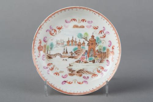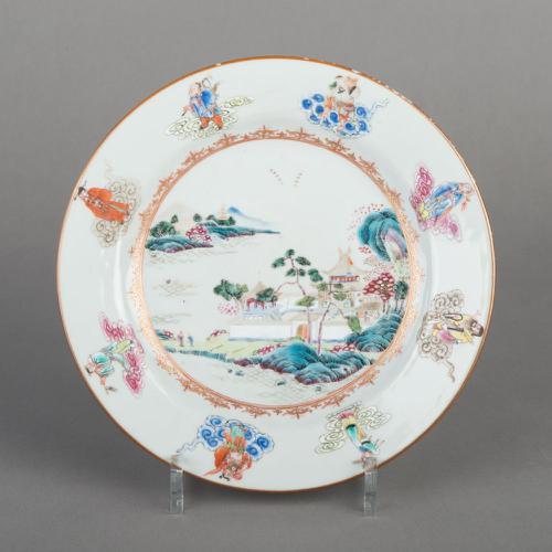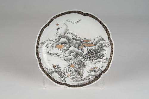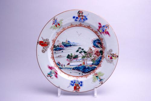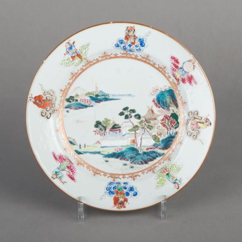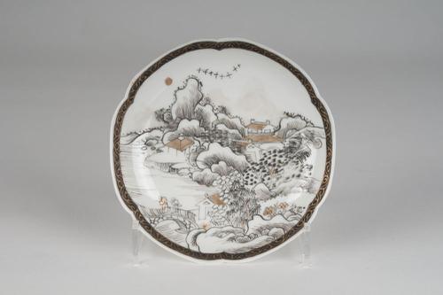 Chinese schotel gedecoreerd met landschapjes en acht...