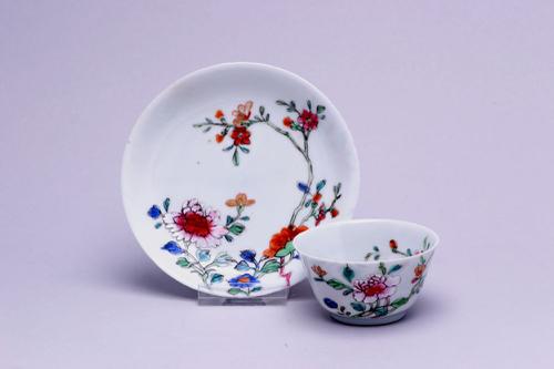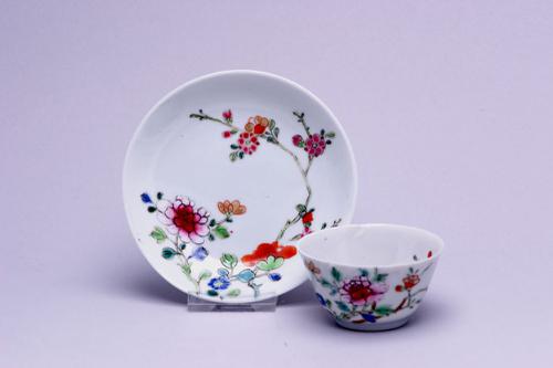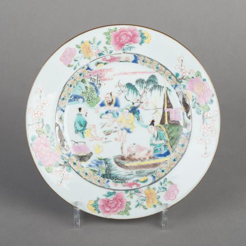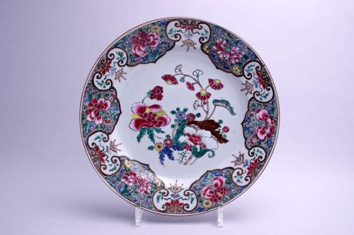 Bord in Chinees porselein gedecoreerd met een bloeme...