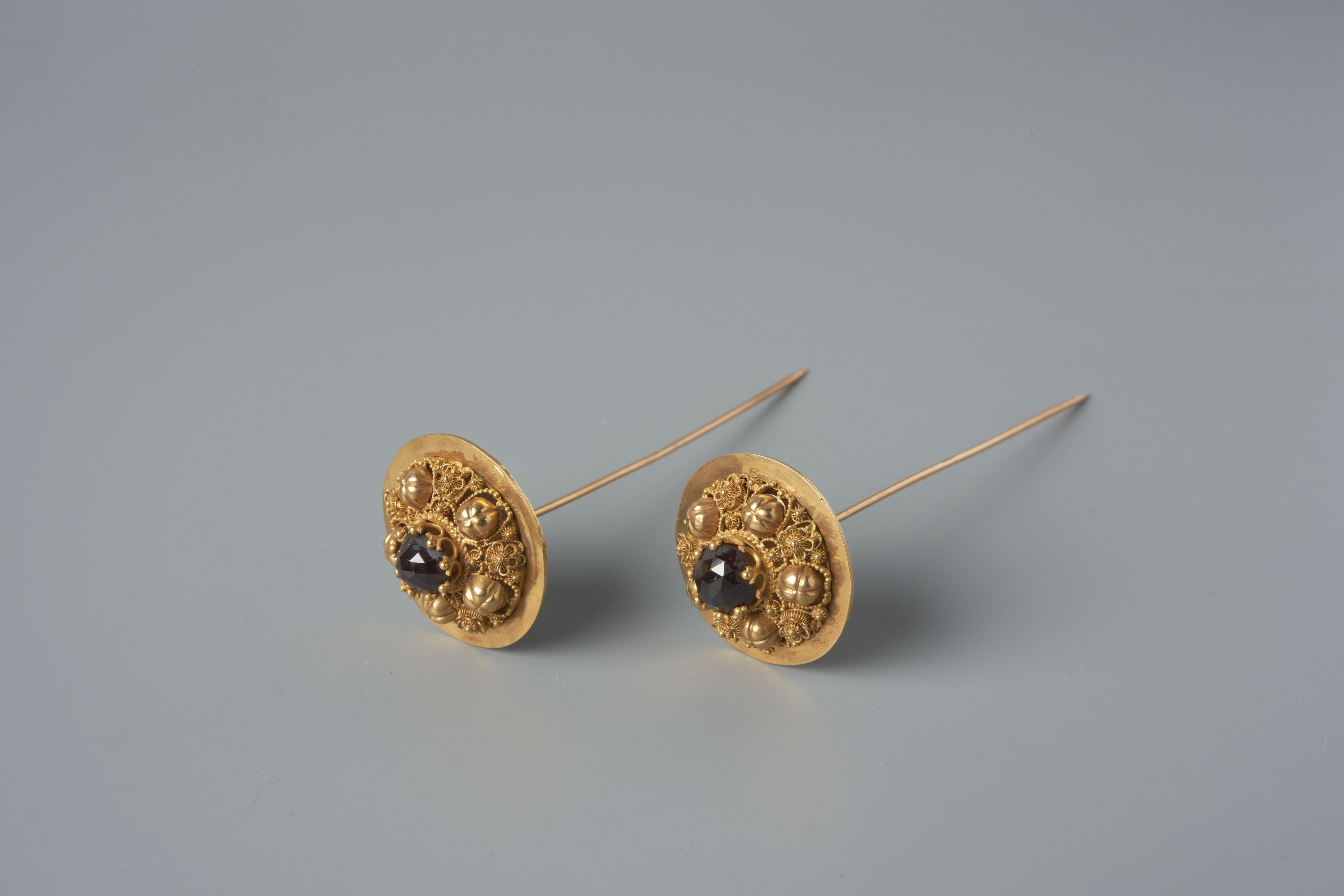 Paar gouden kapspelden, Noord-Beveland, circa 1870