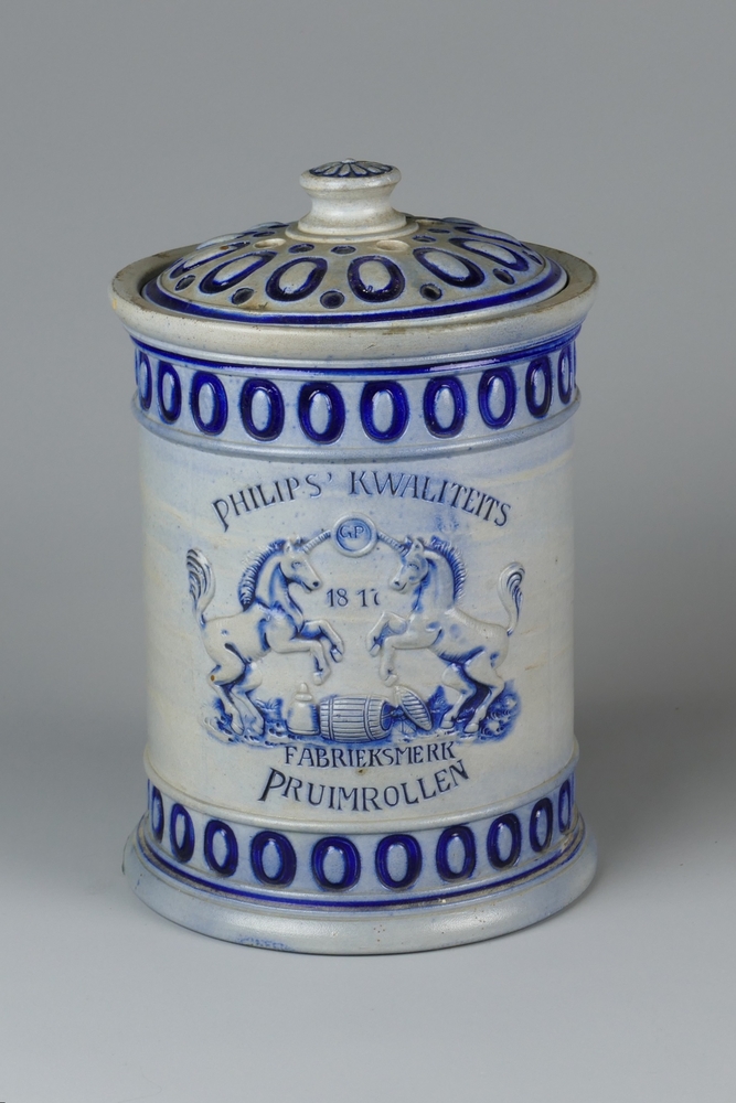 Tabakspot met deksel van grijs met blauw geglazuurd ...