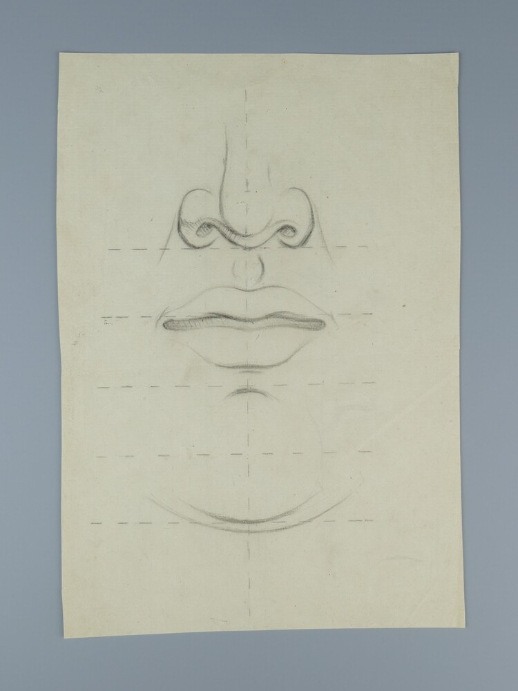 Potloodtekening voorstellende studie van neus, mond ...
