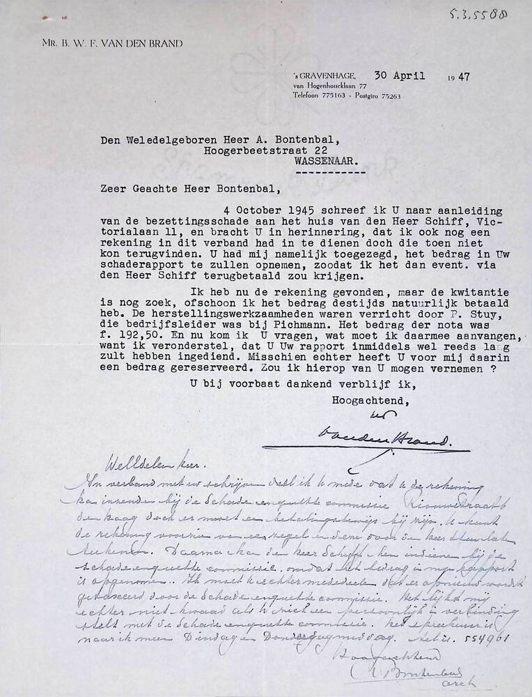 brief van B.W.F. v.d. Brand aan A. Bontenbal, 30 apr...