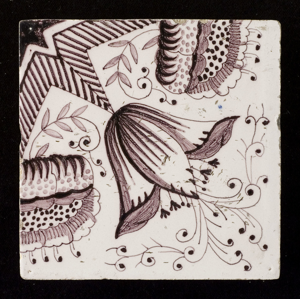 Tegel van keramiek met tinglazuur, voorstellende: or...