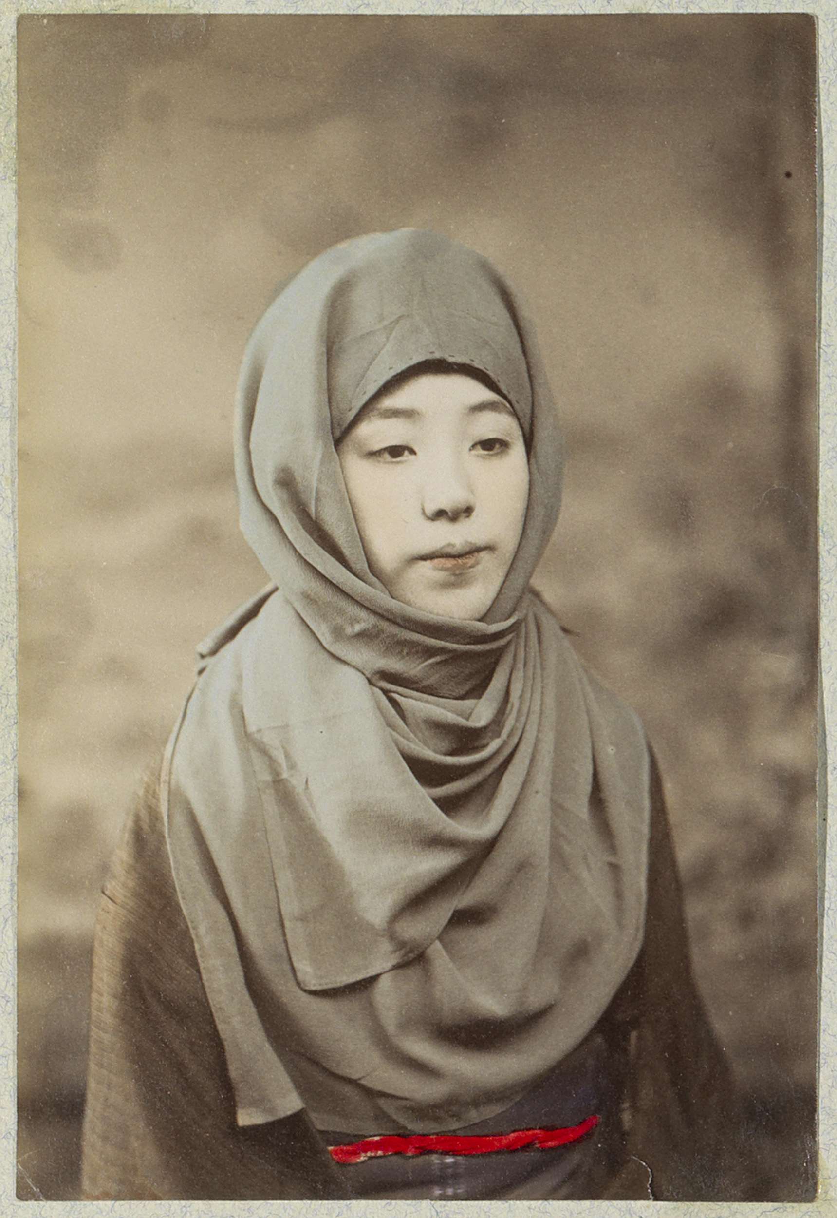 Portret van (vermoedelijk) een Japanse vrouw met hoo...
