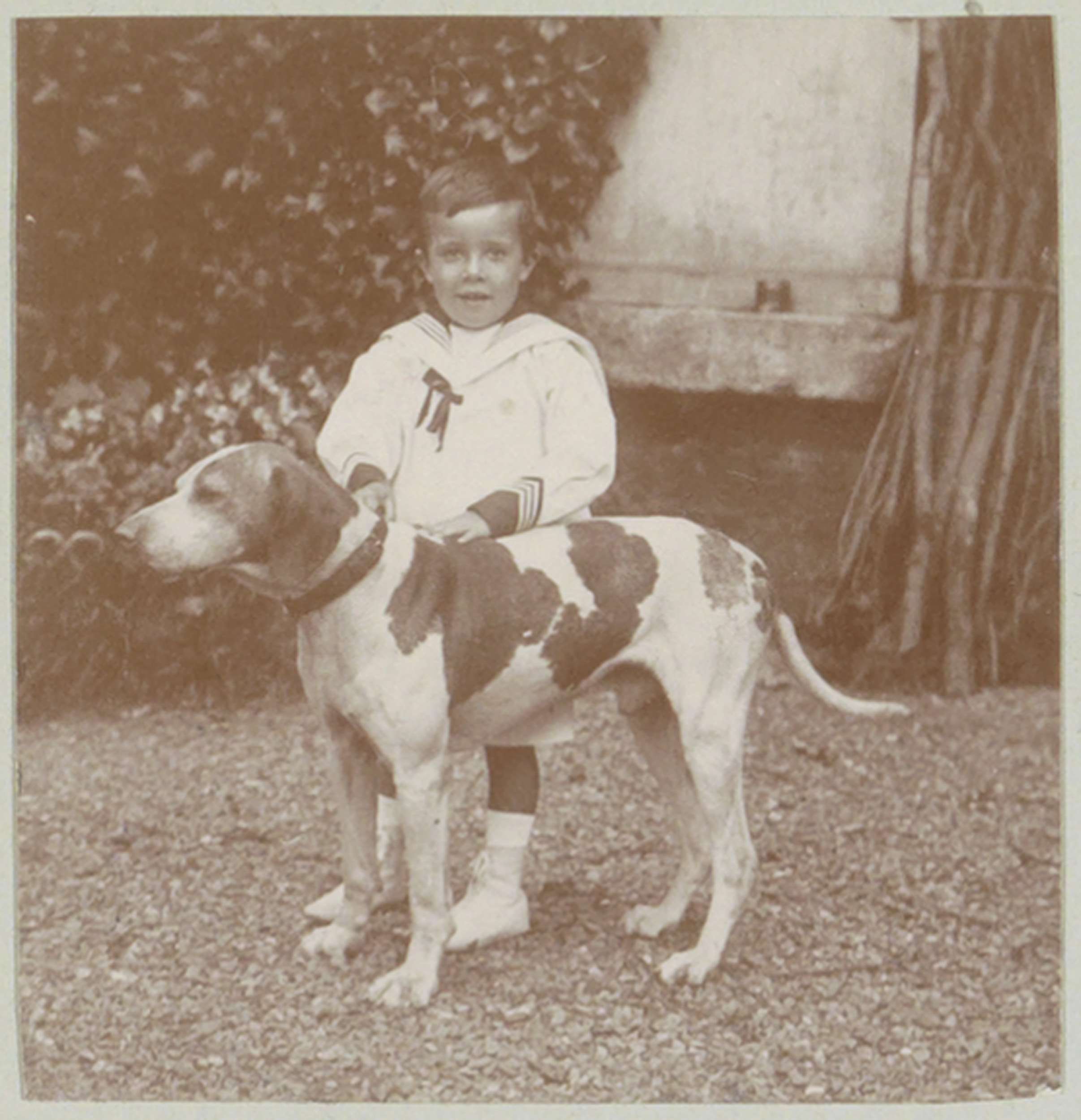 Groep jongens en meisjes op een laan, vermoedelijk o...