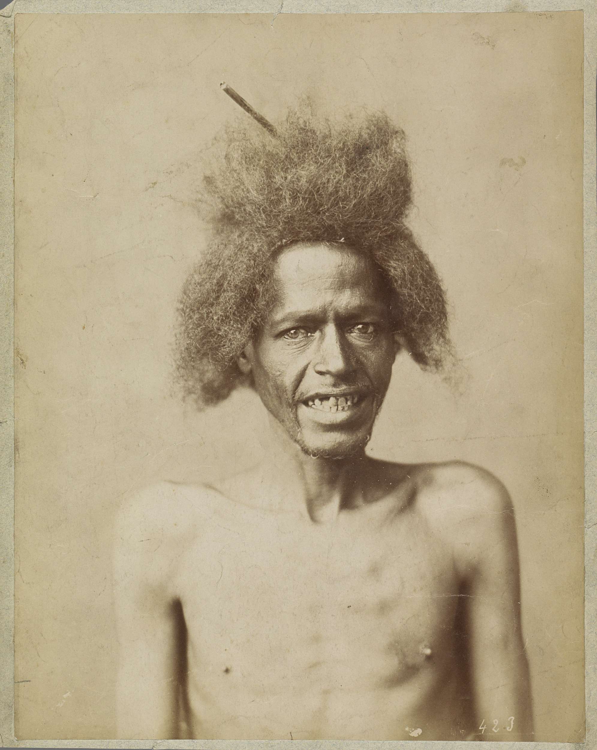 Portret van een zwarte man met ontbloot bovenlijf, m...