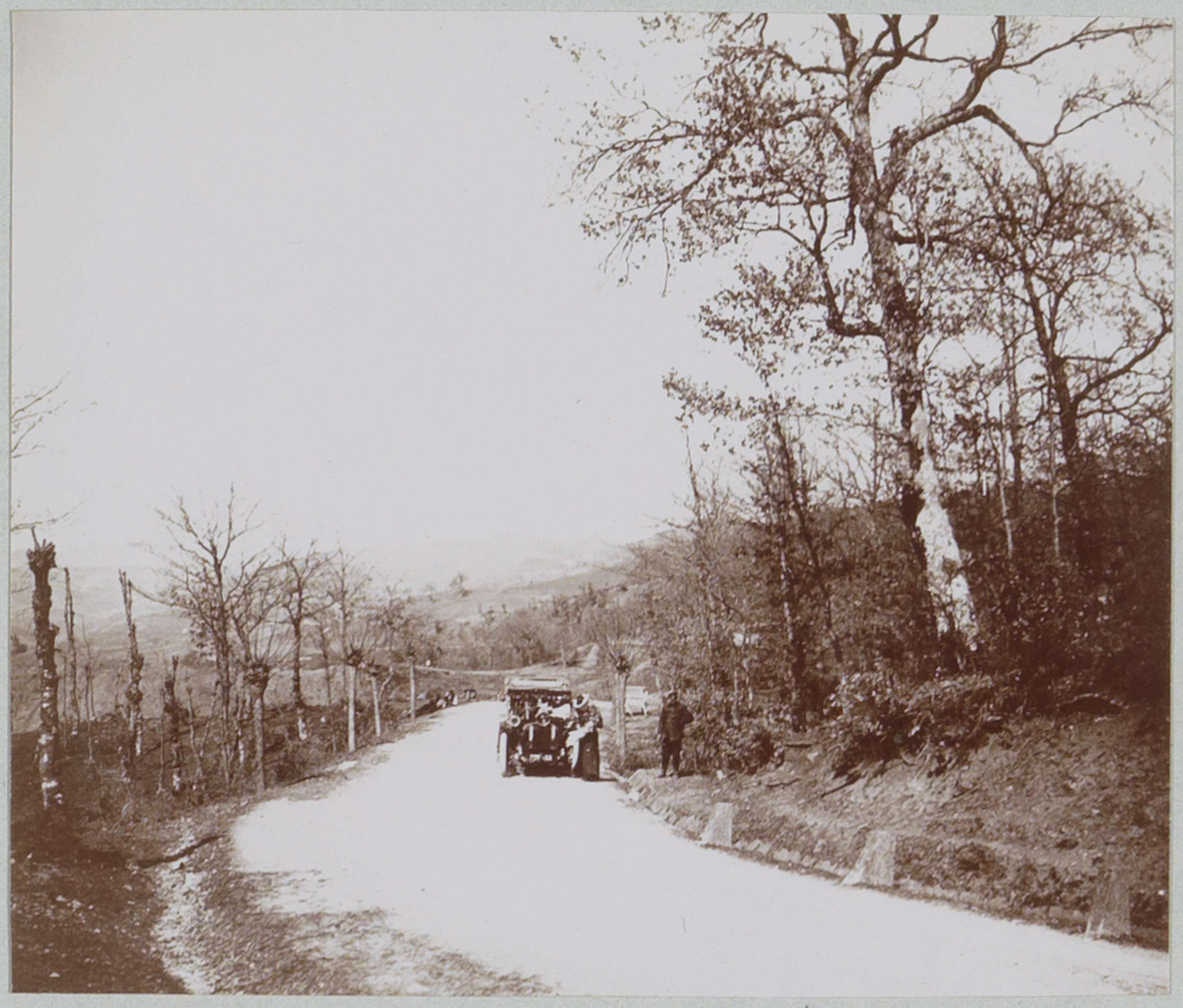 Auto langs de kant van de weg, vermoedelijk in Noord...