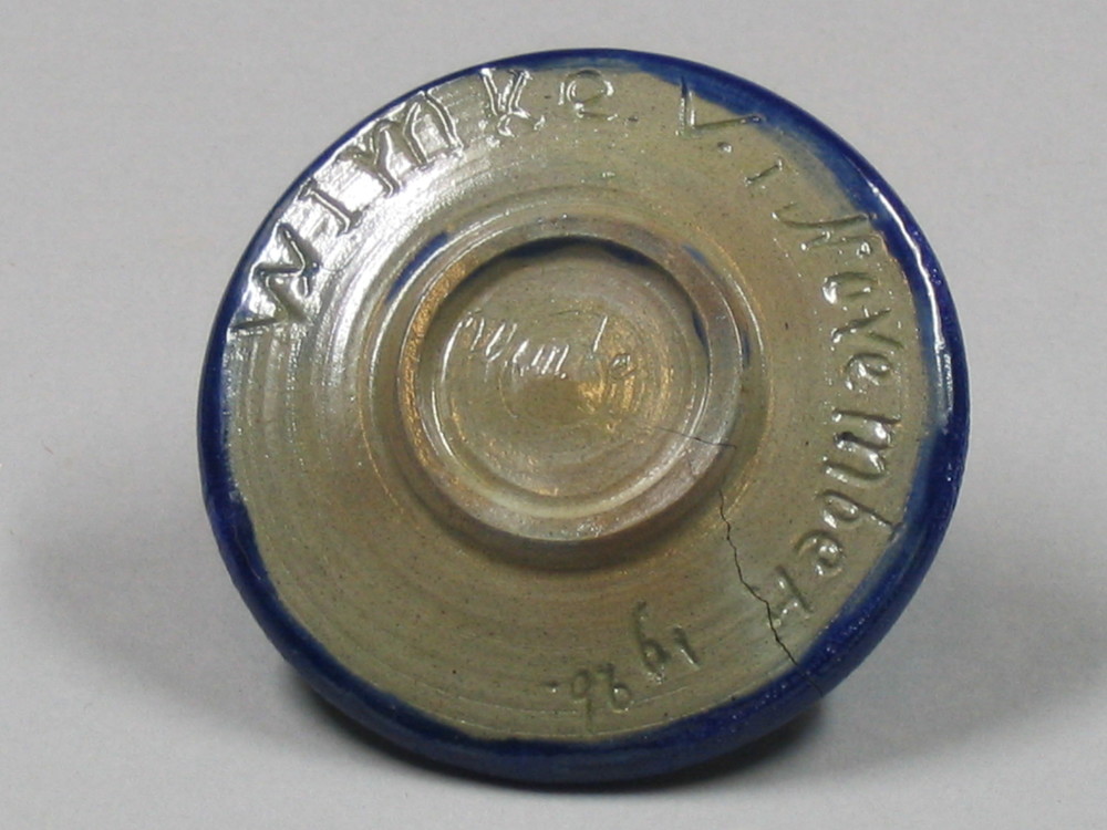 bord van keramiek, blauw, bleek vlekkerig van kleur
