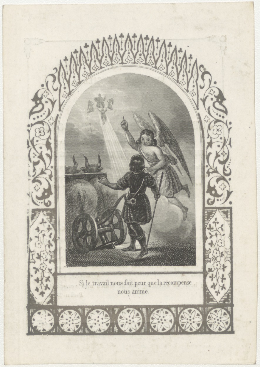 Engel wijst man met ossekar de weg (Frans), kz. Bid ...