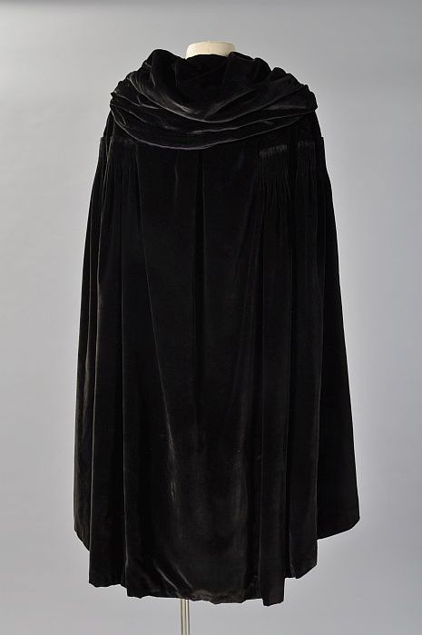 Avondcape, zwart fluweel met paarse chiffon voering