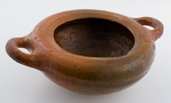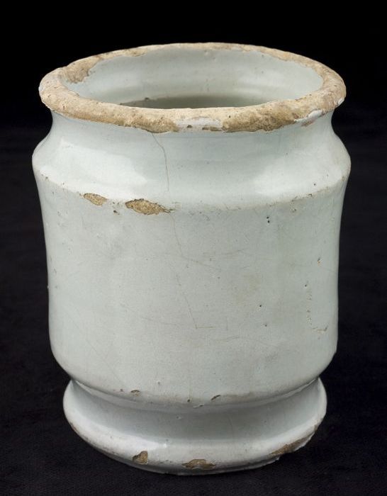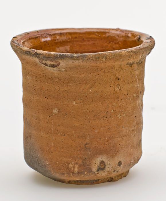 Aardewerk zalfpot, cilindrisch, rode scherf, inwendi...