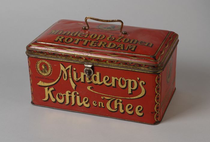 Voorraadblik met "Opgericht Anno 1799 - Minderop's K...