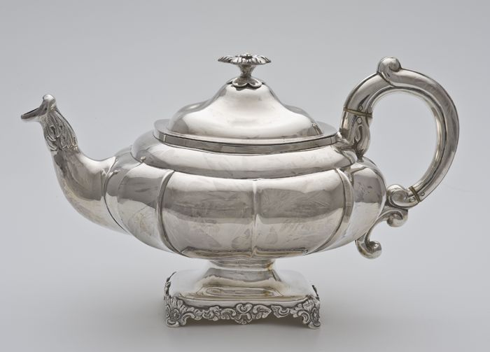 Zilveren theepot met bloem als knop