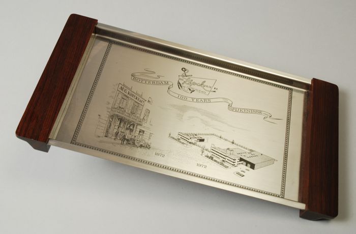Dienblad met afbeeldingen van gebouwen en "Aug. Köpc...
